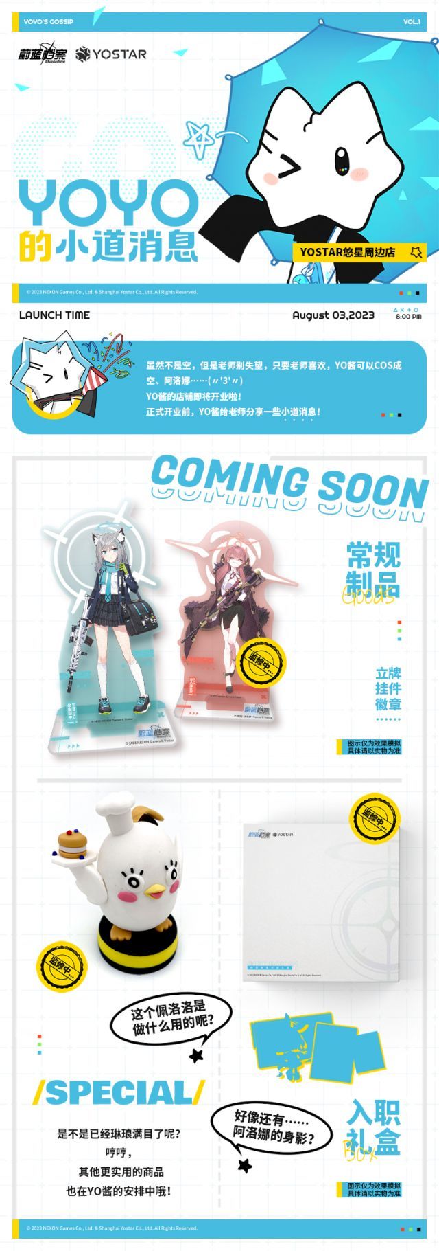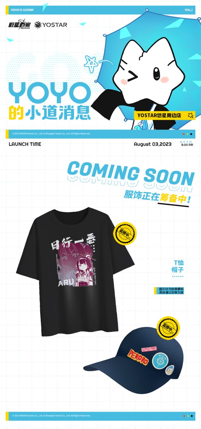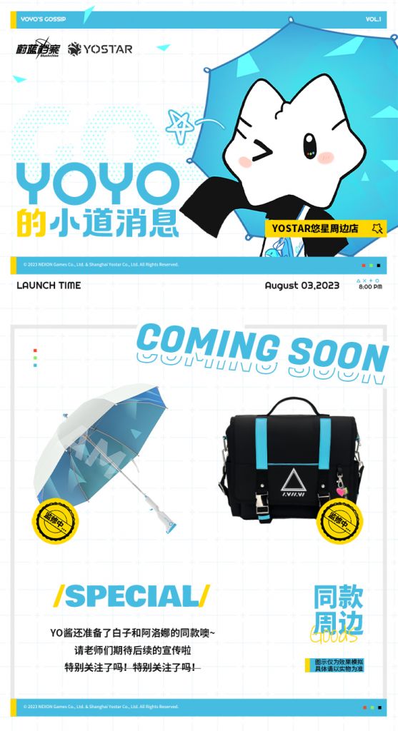 碧蓝档案官方周边将于8月3日开启预售,详情可关注Yostar悠星周边店