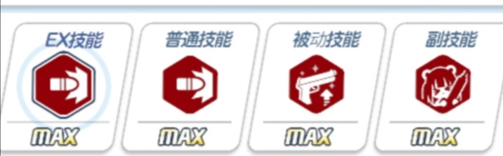 ◎角色有四个等级,EX等级最高为5级,其他三个技能最高10级,按顺序用四个数字表示其等级即为XXXX。由于全拉满写作5 10 10 10过于冗长,一般以M(Max)代表,写作5MMM或MMMM。