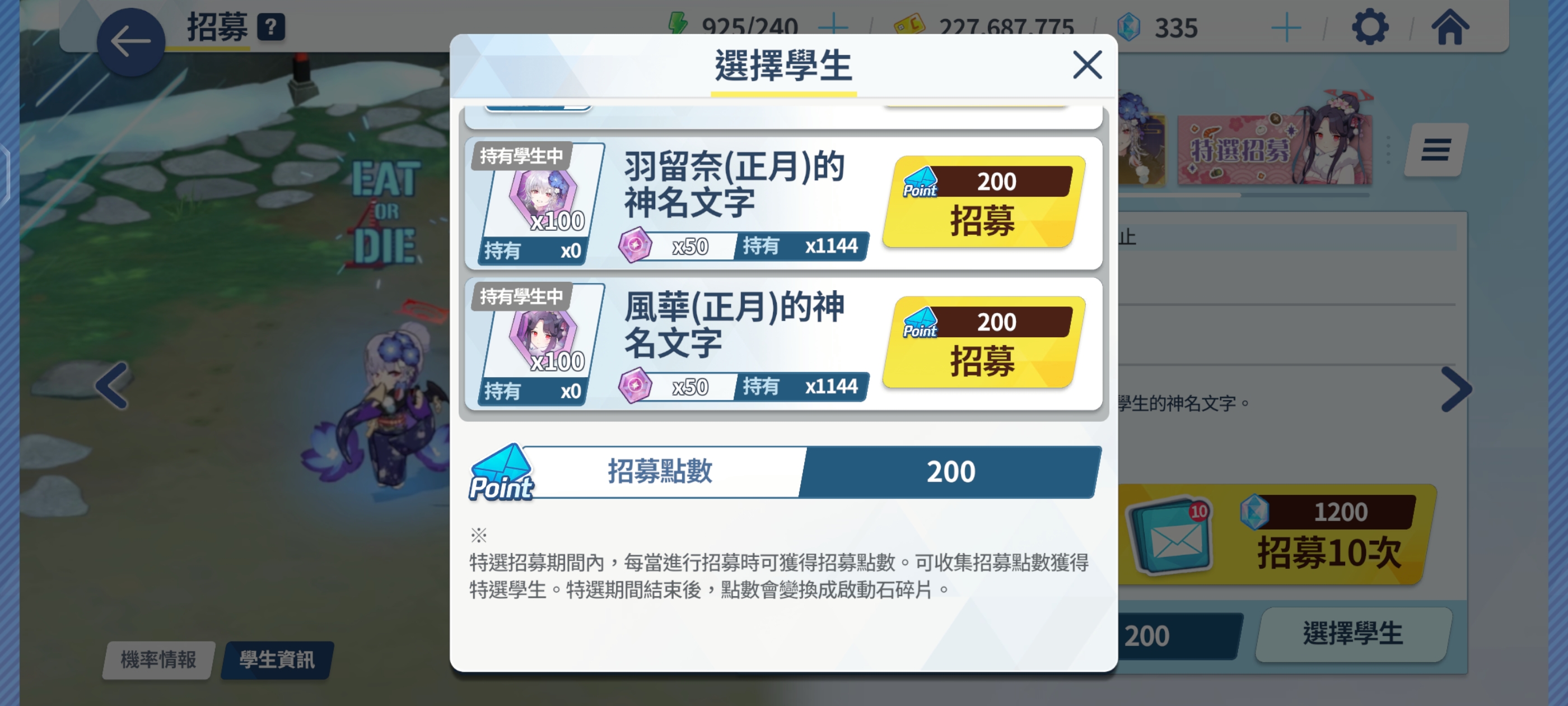 这两个学生已经满120个神名文字了,怎么招募不了