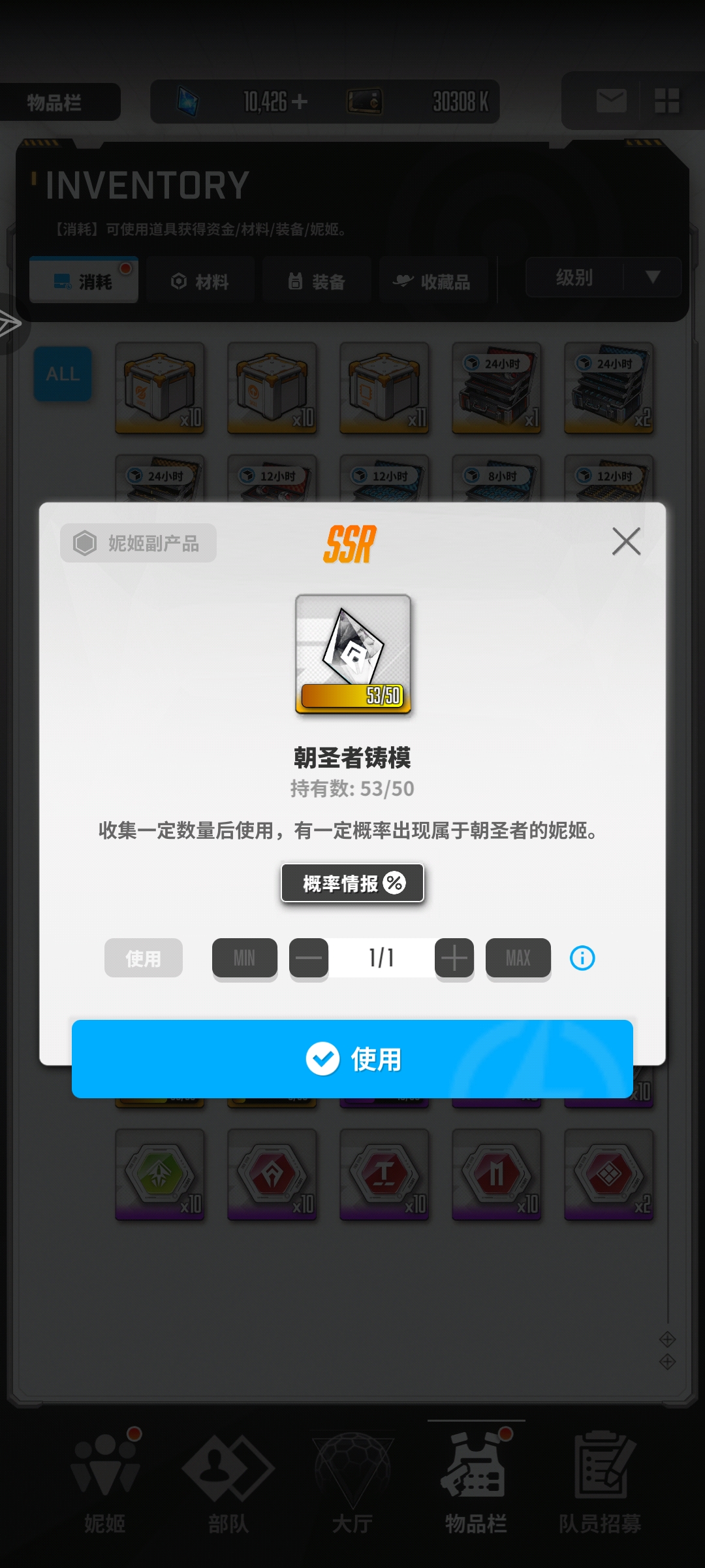 盲猜蓝色,朝圣铸模蓝色概率极高,因为是强度最高的系列,感觉官方有意暗改了出率。