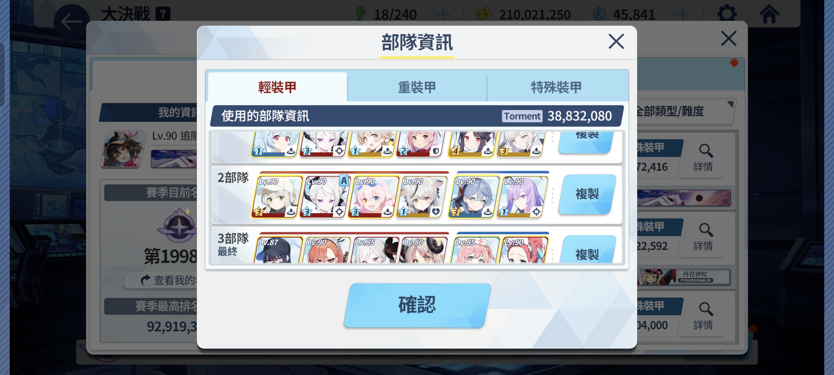 也是除主教之外第二次打过TM难度了,自己乱打。起因是打完三IN难度之后想摆了,然后查看排名的时候发现我排名的前一名就打了红甲TM,黄甲IN,蓝甲EX,此时我就好奇了,为啥能过的红甲TM,而不能打过蓝甲IN。我就查看了他的配队,发现他两刀,第一刀吹雪一级就过了,我就思考一下应该这次TM挺简单的吧,于是按我自己打IN的方式打了一下模拟战,发现还行,第一刀没能直接结束一阶段差几万血,第二刀结束就还剩500w血我就想应该可以堆尸过去,于是折磨的实战开始了,不查攻略纯靠自己摸索,实战各种意外发生属实折磨人,打了50分钟才能过去,浪费时间下次不打TM了![[dou]](https://uc.ourplay.net/cbo/face/a00a9af56b0f1cf2da1b5f67069d5478.png)