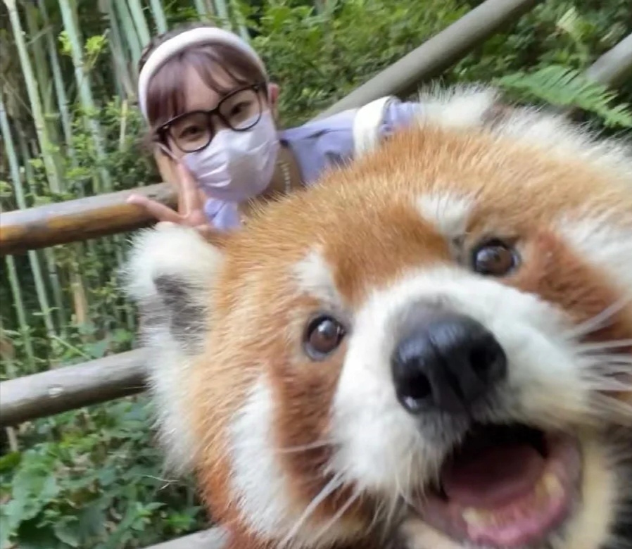 今天不太方便拍耶,拿以前去看小熊猫的自拍凑数吧