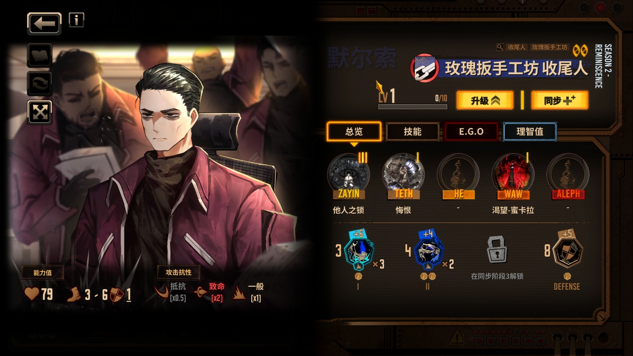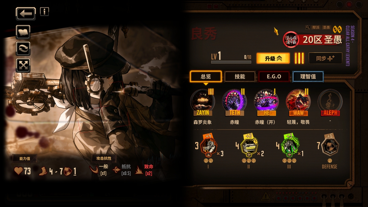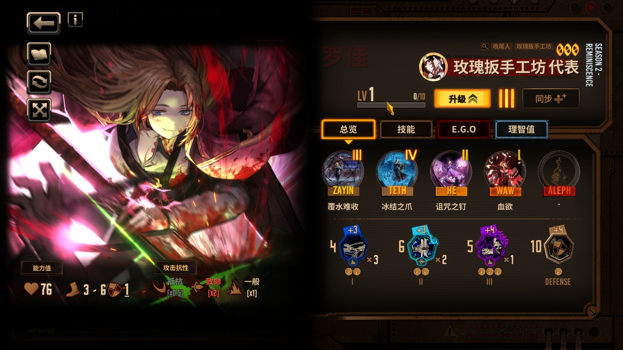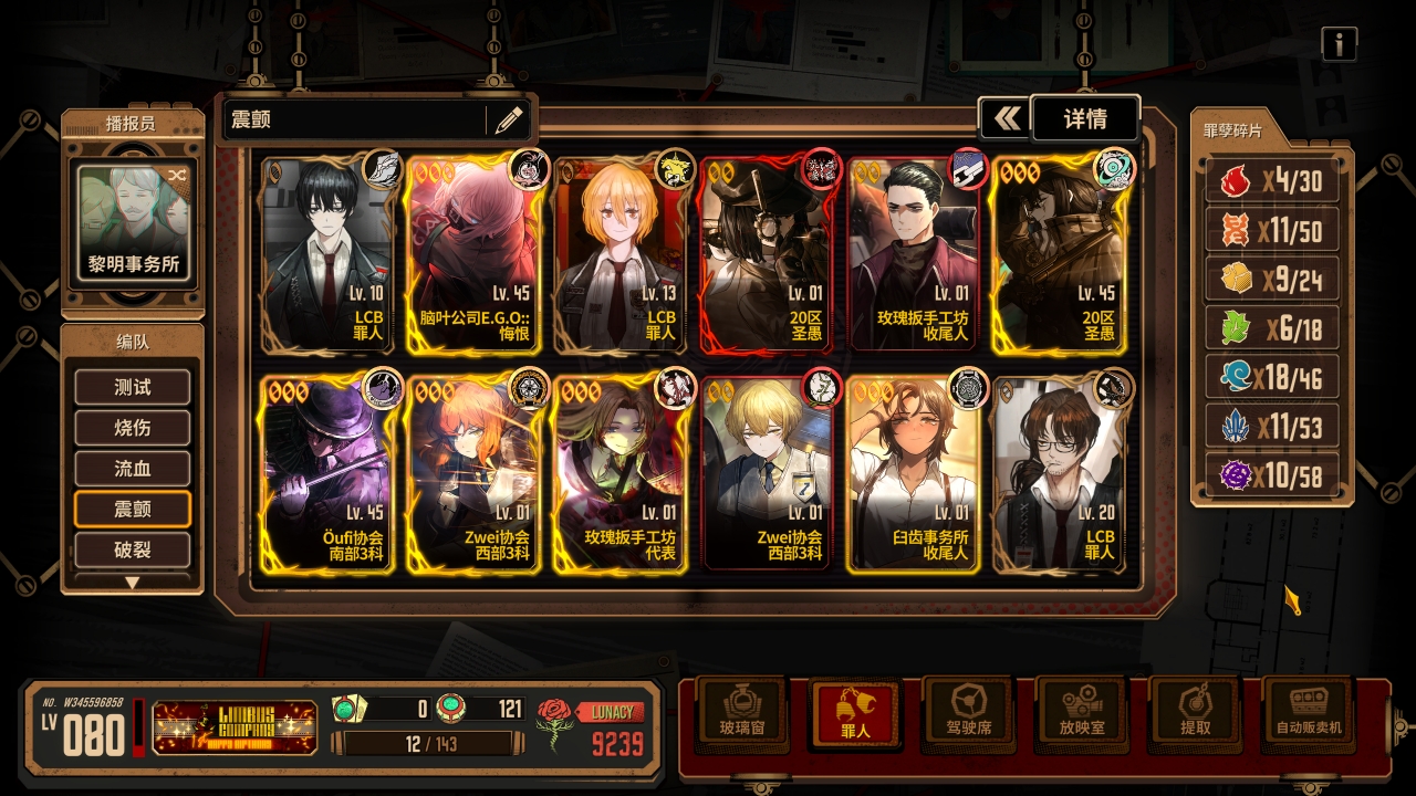 六人的队伍已经组成,我们接下来补充队伍需要的核心ego使其变成真正能玩的基础震颤队伍