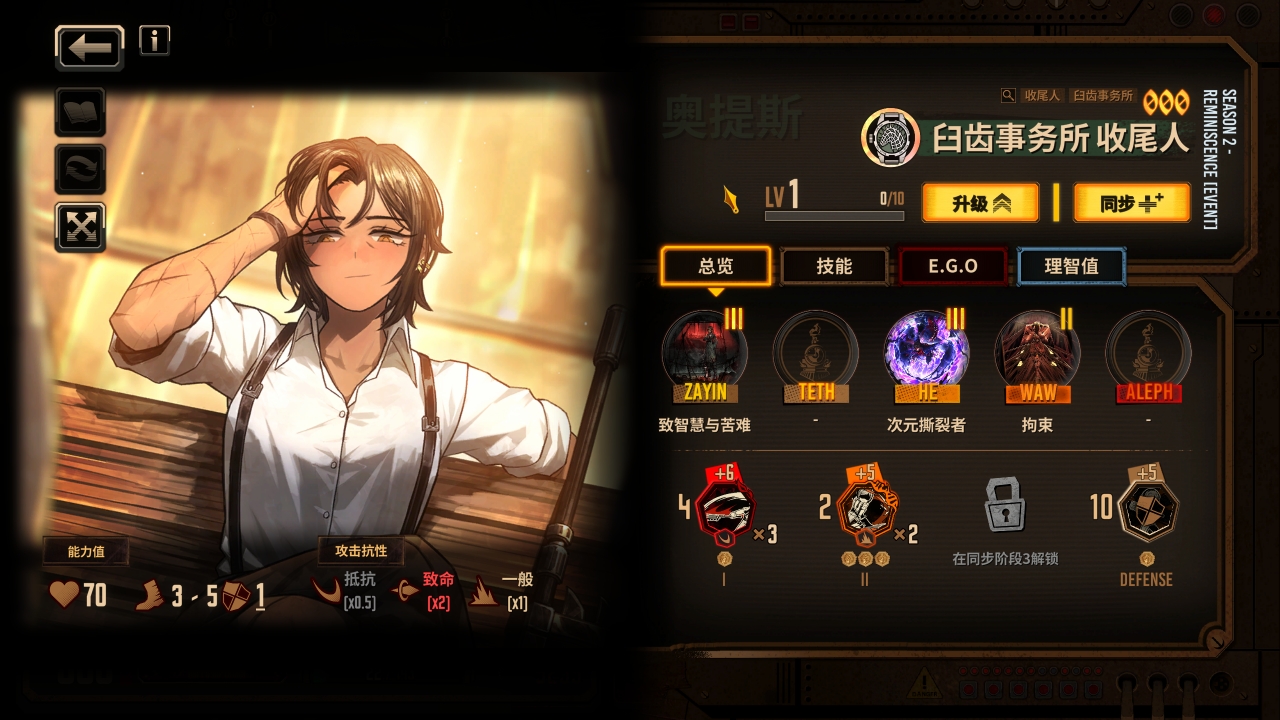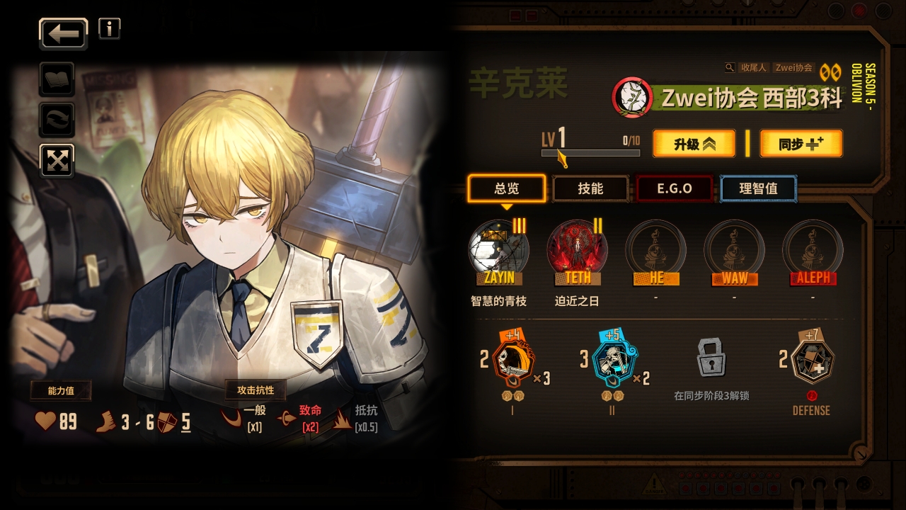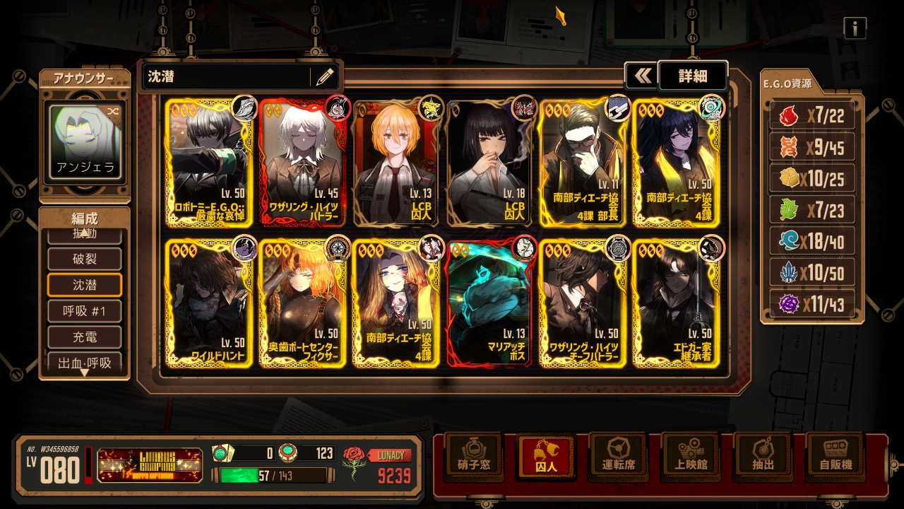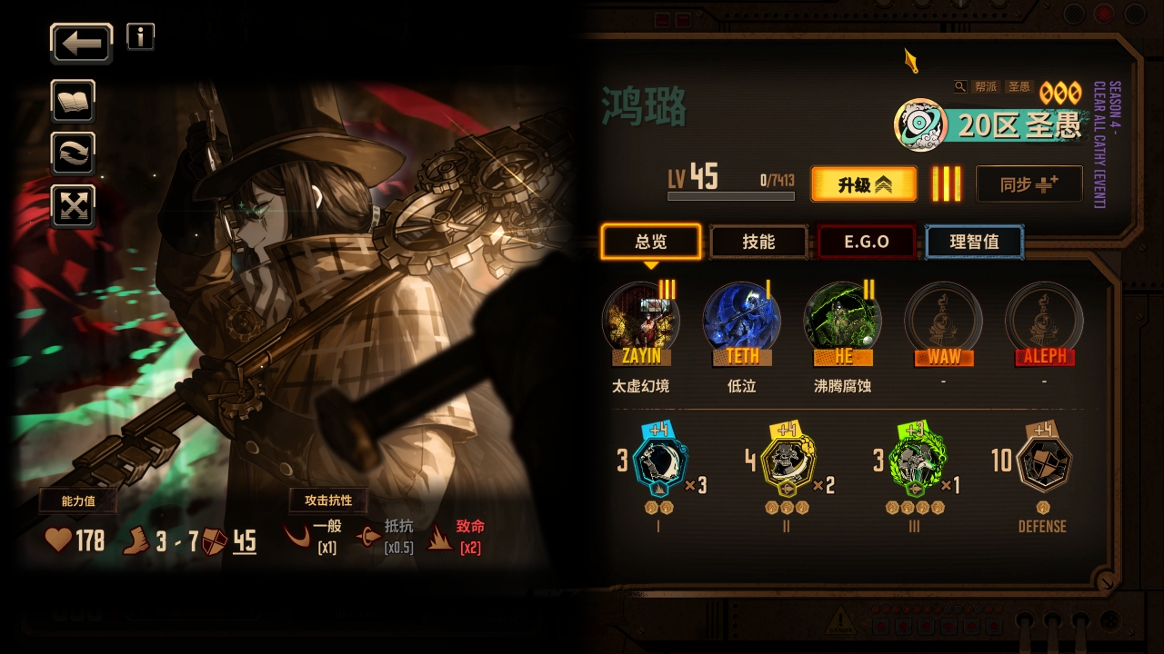 六人的队伍已经组成,我们接下来补充队伍需要的核心ego使其变成真正能玩的基础震颤队伍