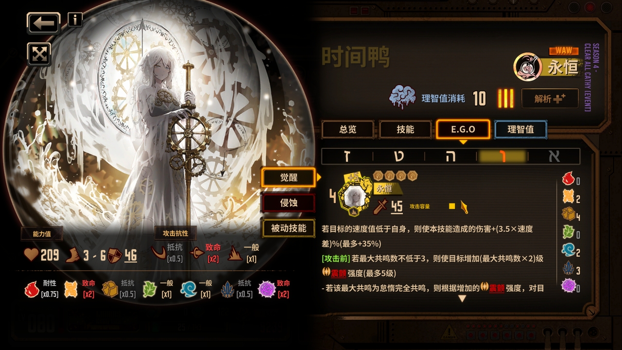 7.小夫的失衡惯性和玛玛的圣诞梦魇提前放给队伍提速(小夫提高上强度能力,玛玛上层数以及触发ego被动提高人格给自己上层数的效率)