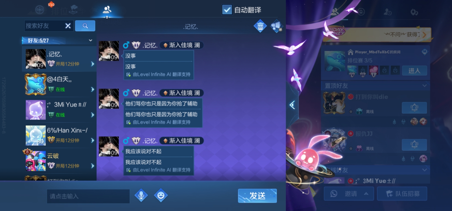 一开始你们没有跟我说你们要玩辅助然后你们三个人抓着我骂