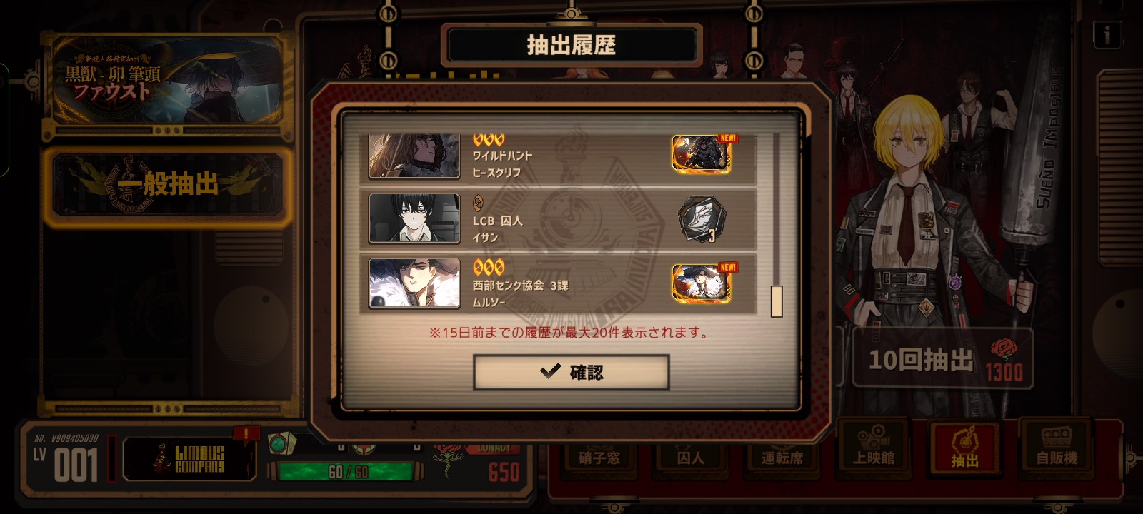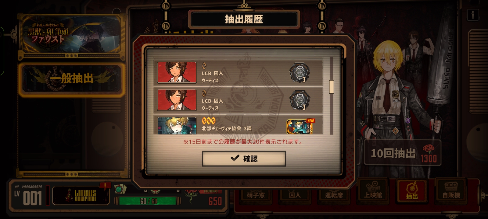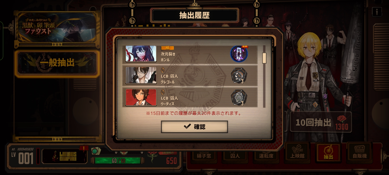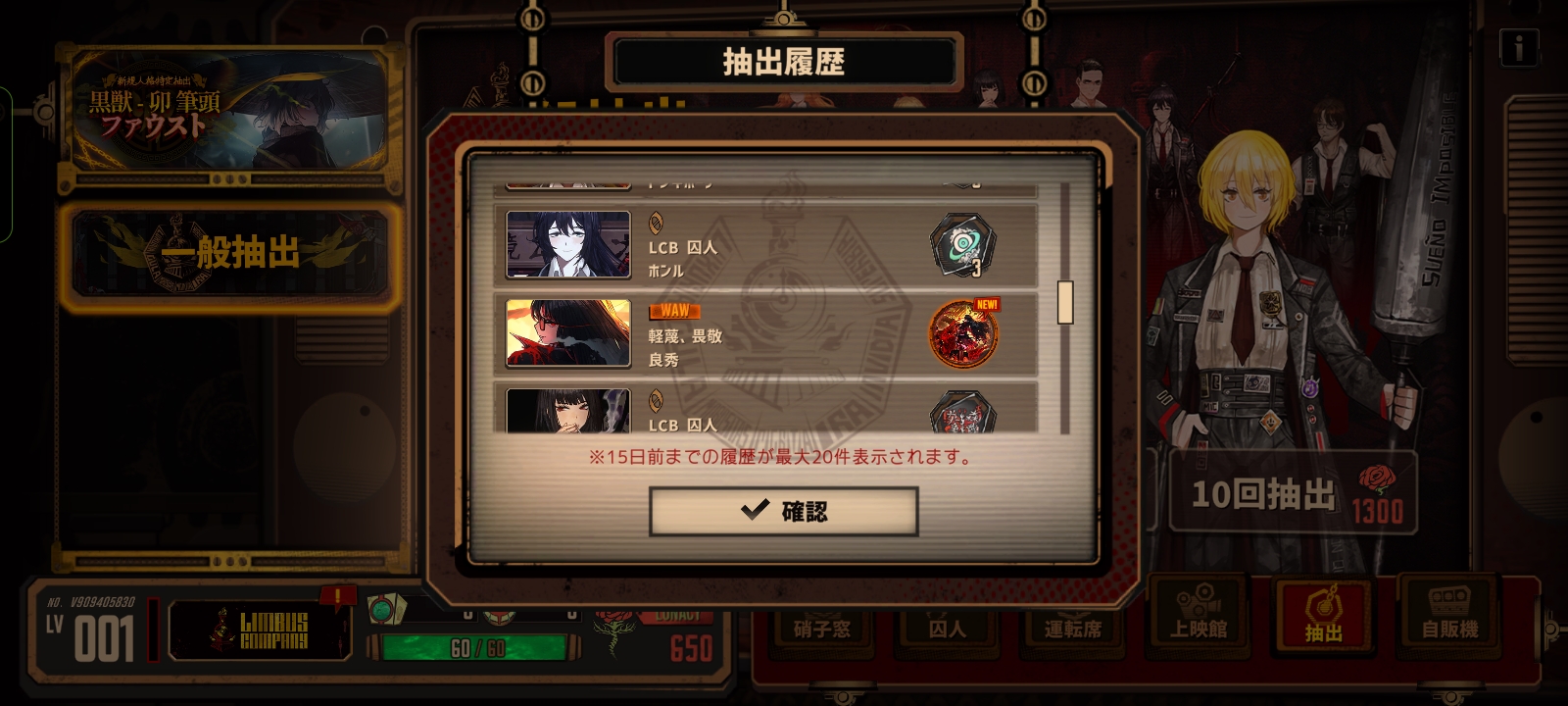第一抽出了魔法少女堂,十抽出杀人魔浮,然后二十二抽红色变绿出了绝望佳