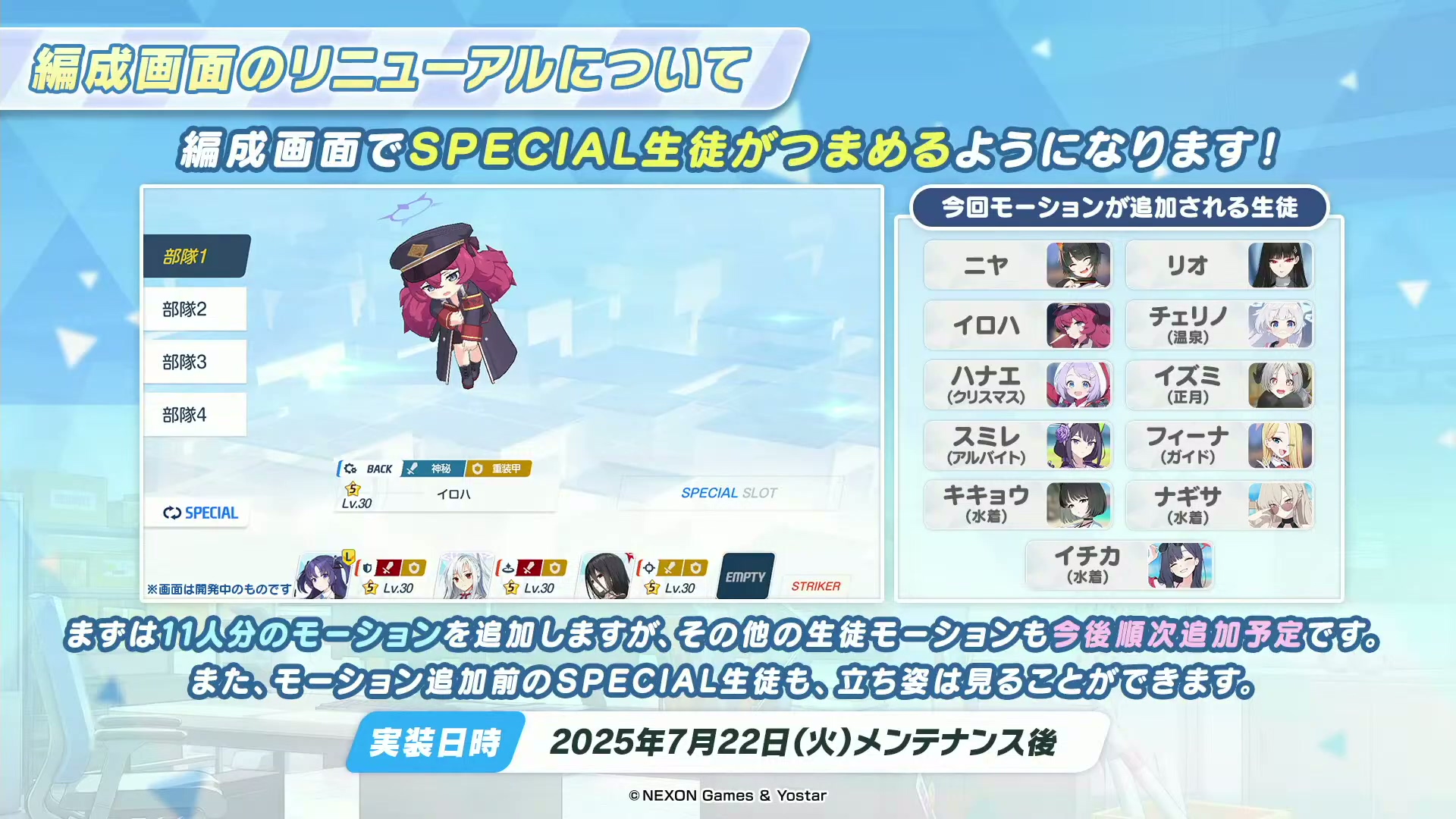 更新后可以在编队画面看到后排学生的样子!