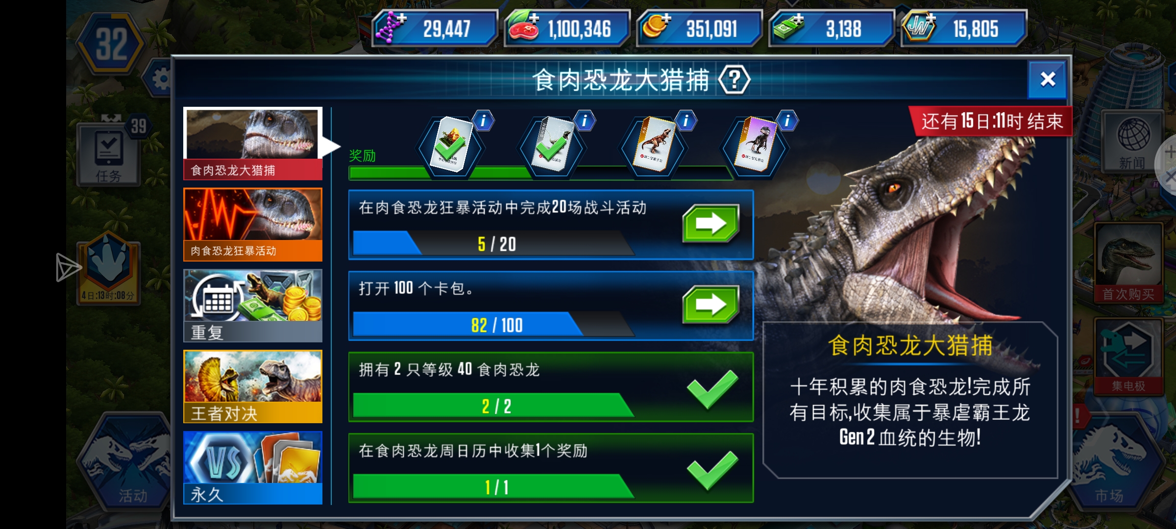一天俩活动,到目前应该还有30个活动左右,再打15个就好了