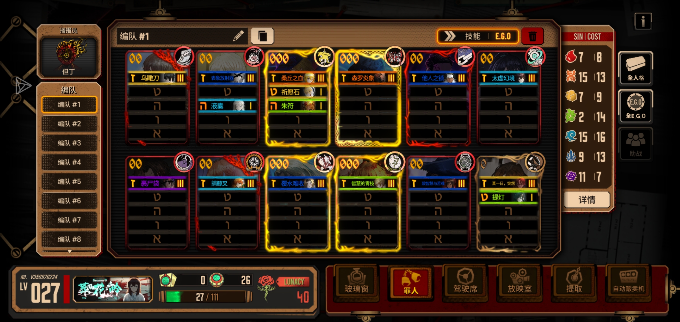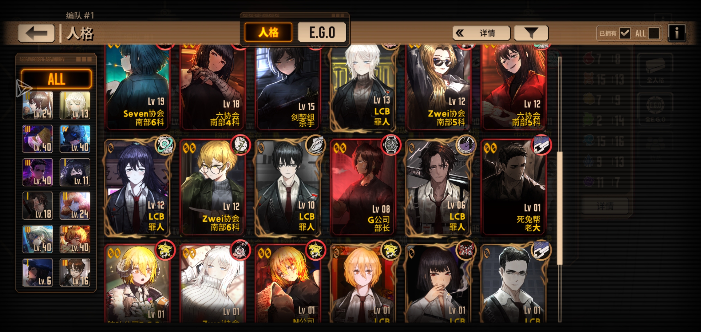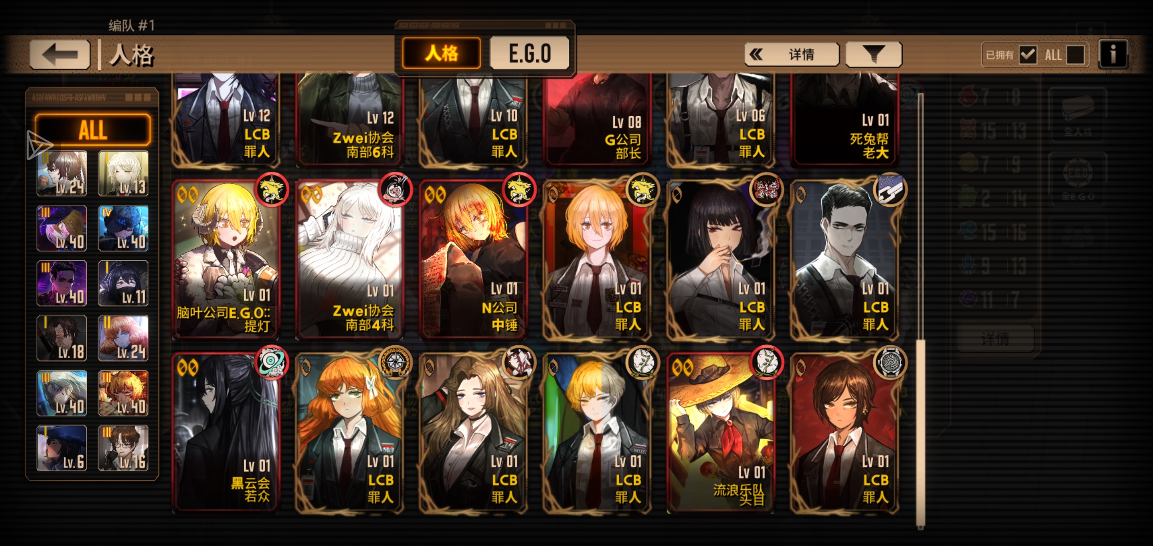 补一下充能人格,养成按憎恶罗,w良,w唐的顺序来。补齐之后就可以向着自己喜欢的阵容去发展了(补齐的过程里游戏理解会一点点成熟的)
