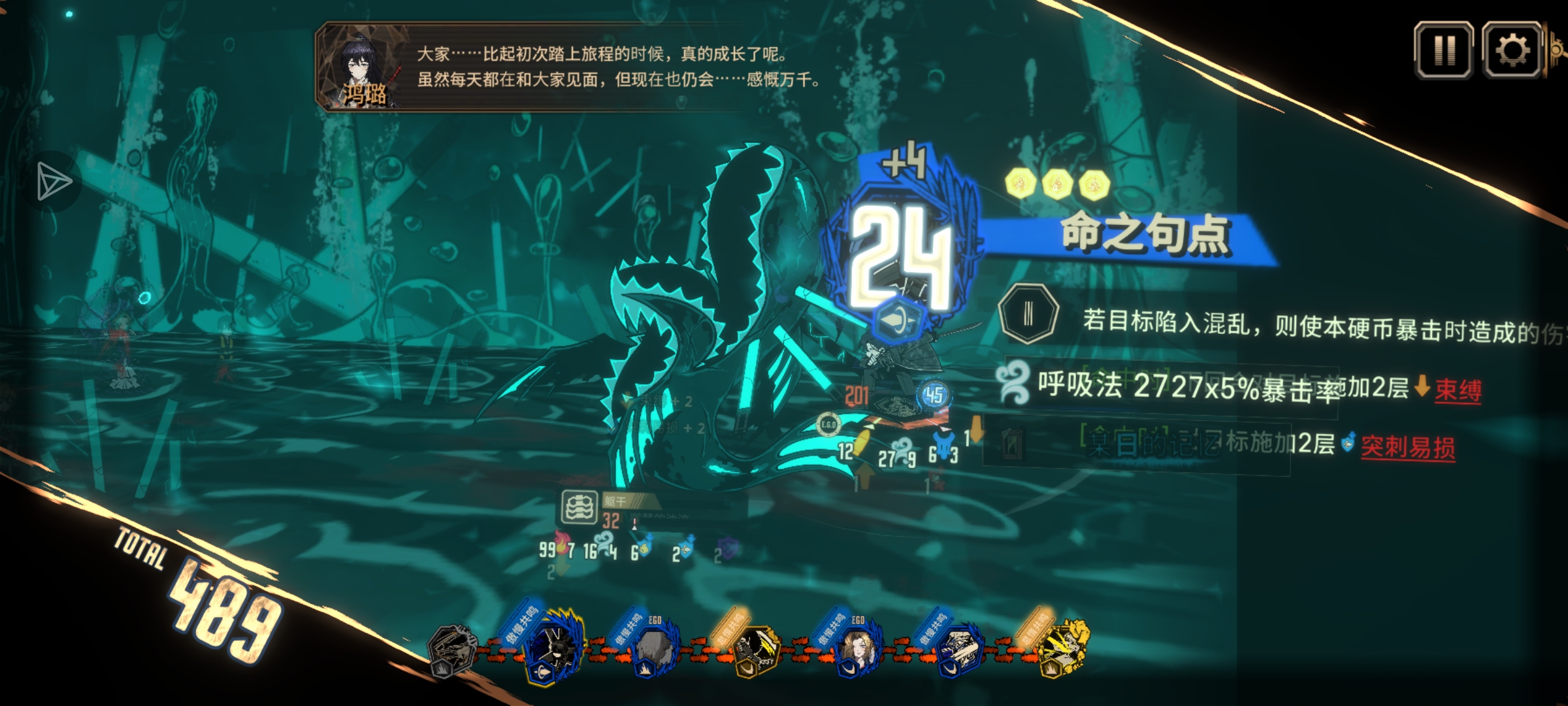 小登在打普牢五层最后一关噬梦的浊流时,噬梦的群攻拼不过,兔浮半身入土,本想着牺牲兔浮了吧,句点宝暴击成功提前杀了浊流。