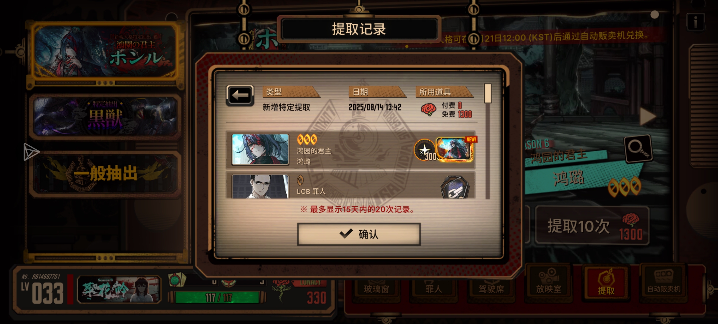 之前抽罗佳池子30抽6个金,人现在还在呢[rudyye]