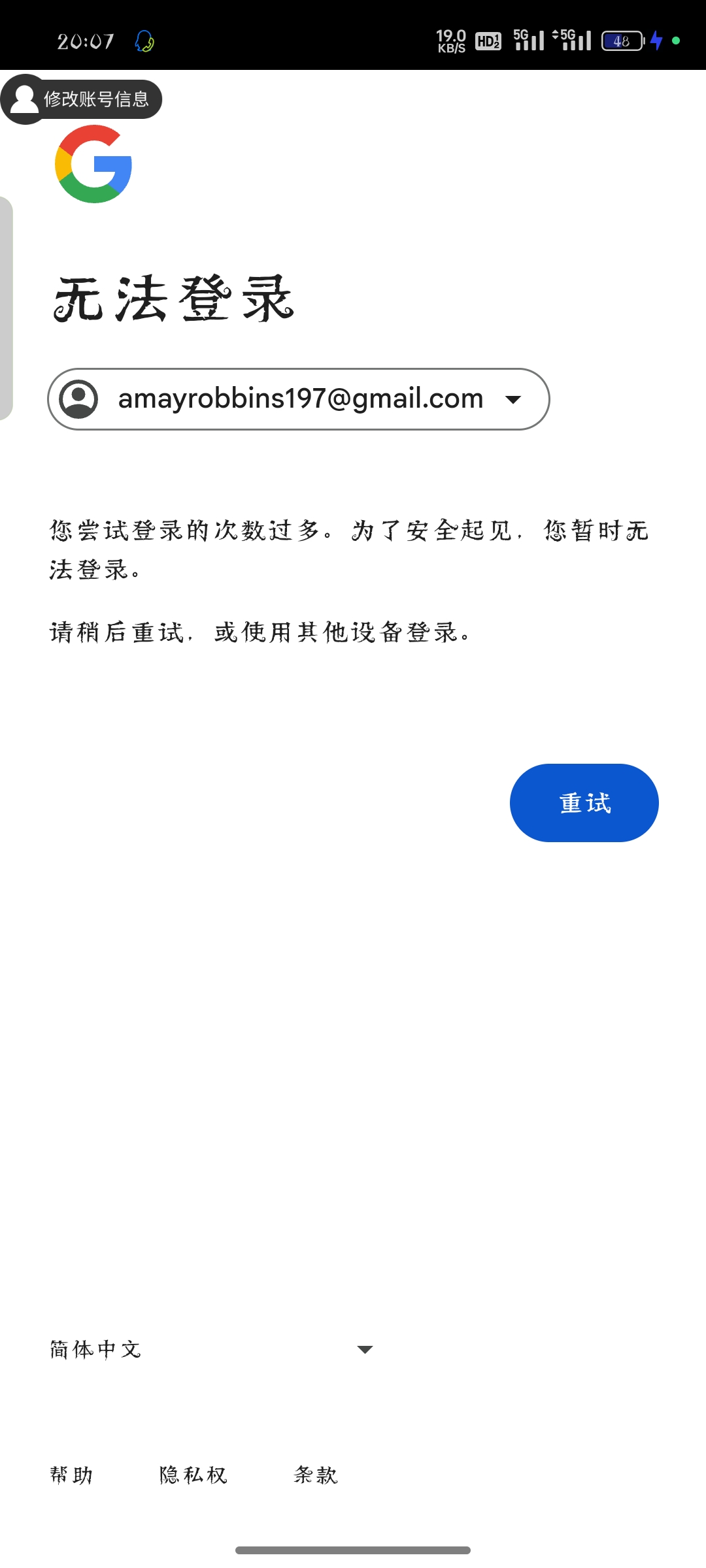 等两天再去登录试试
