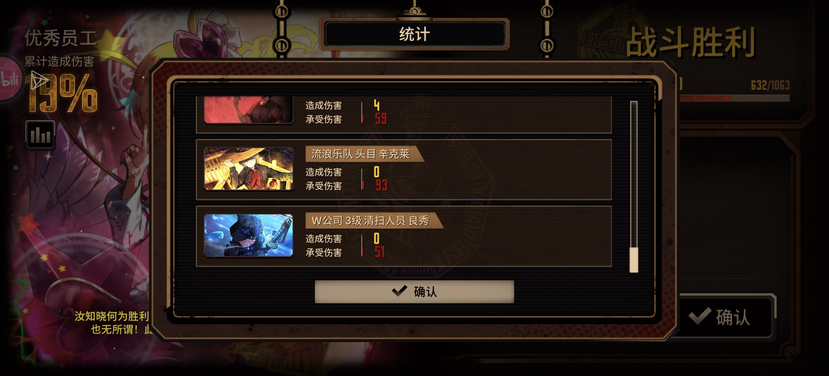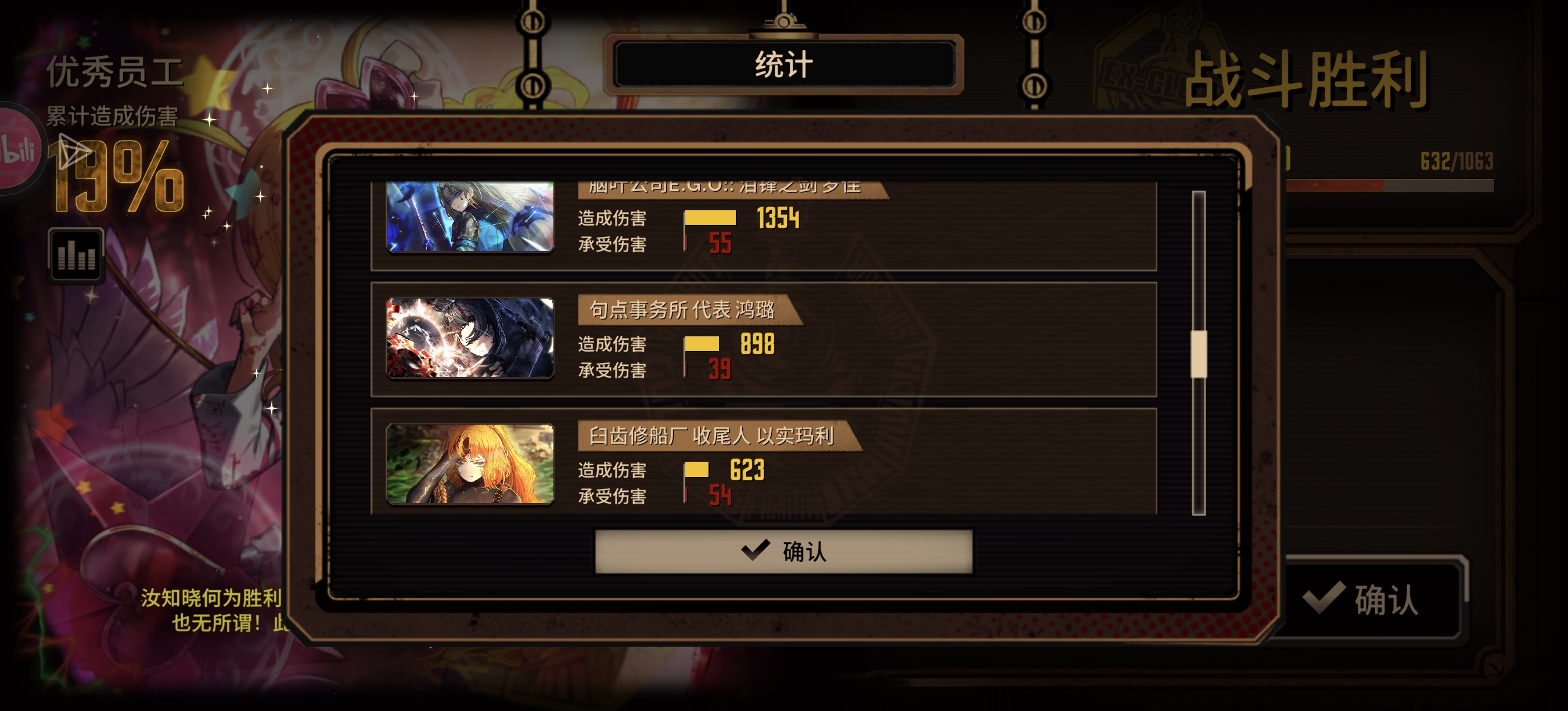 憎恶唐第二段发力是真的很强,配合ego可以很好的解决前面两场的大罪,第二场要注意防一下中指唐和火浮还有前面的四色欲共鸣黑云夫。以及要注意放一些带嫉妒技能的炮灰(最好带六个,最后四个待机位置放其他主c,我放的是绝望加双句点还有借的水玛)