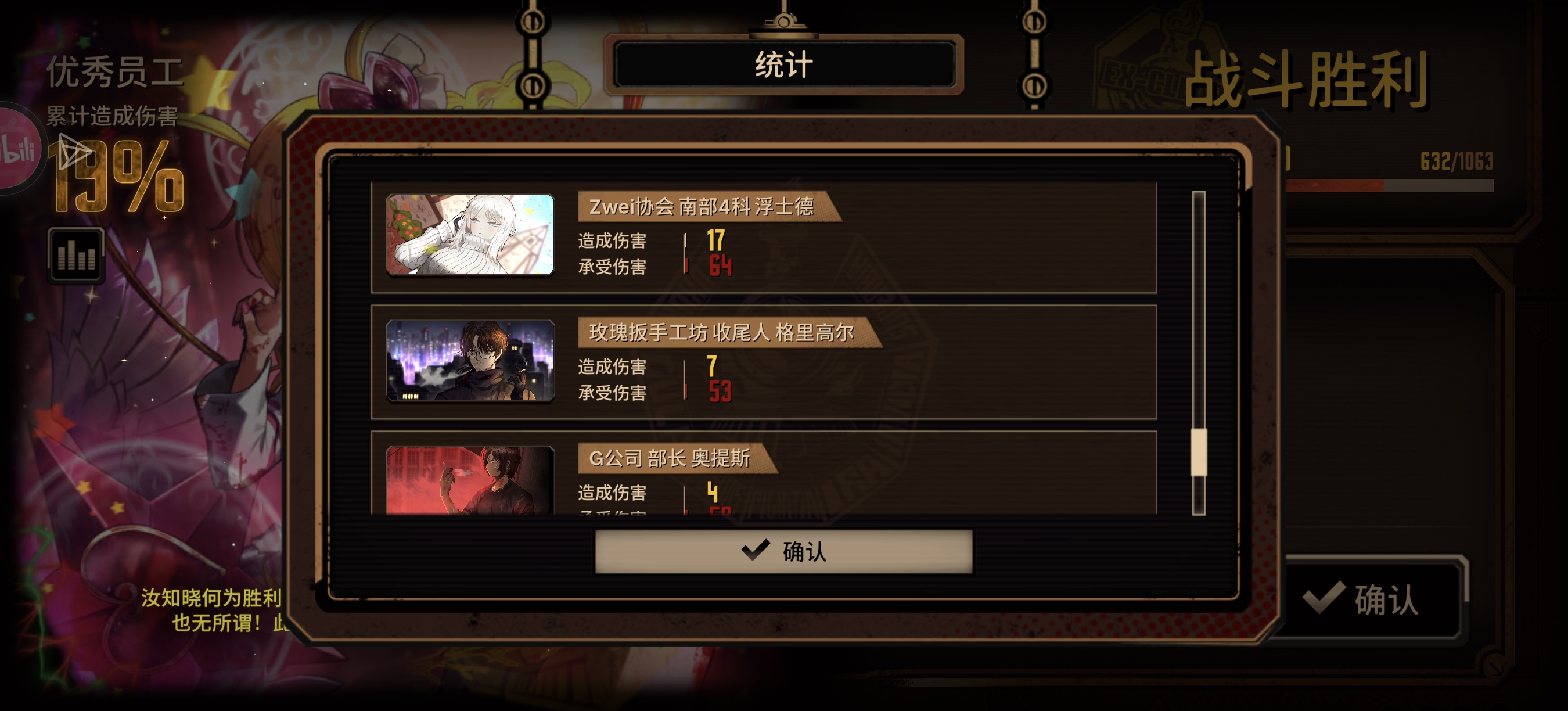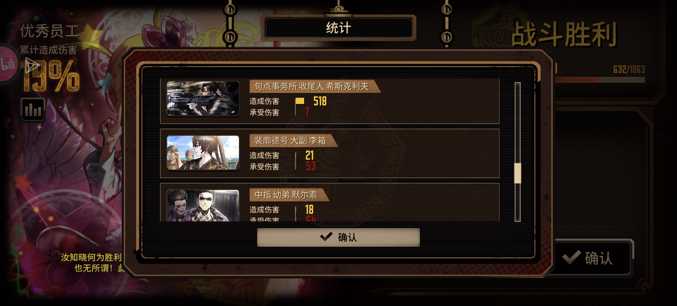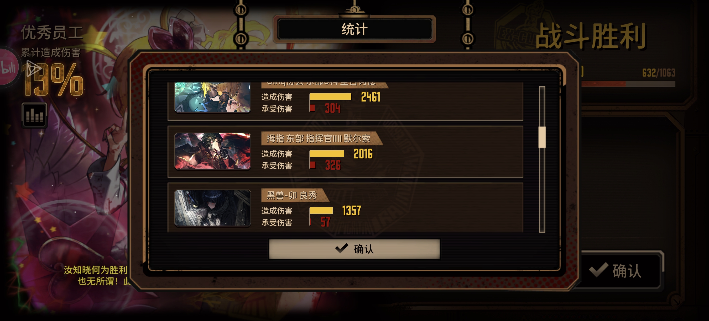 兔头就不用说了,能打能扛配上液袋直接解决第三段公主被动上的流血的威胁,可惜我是自抽号入坑液袋还没肝出来只能借一个,不然的话第三段借的就是兔良了
