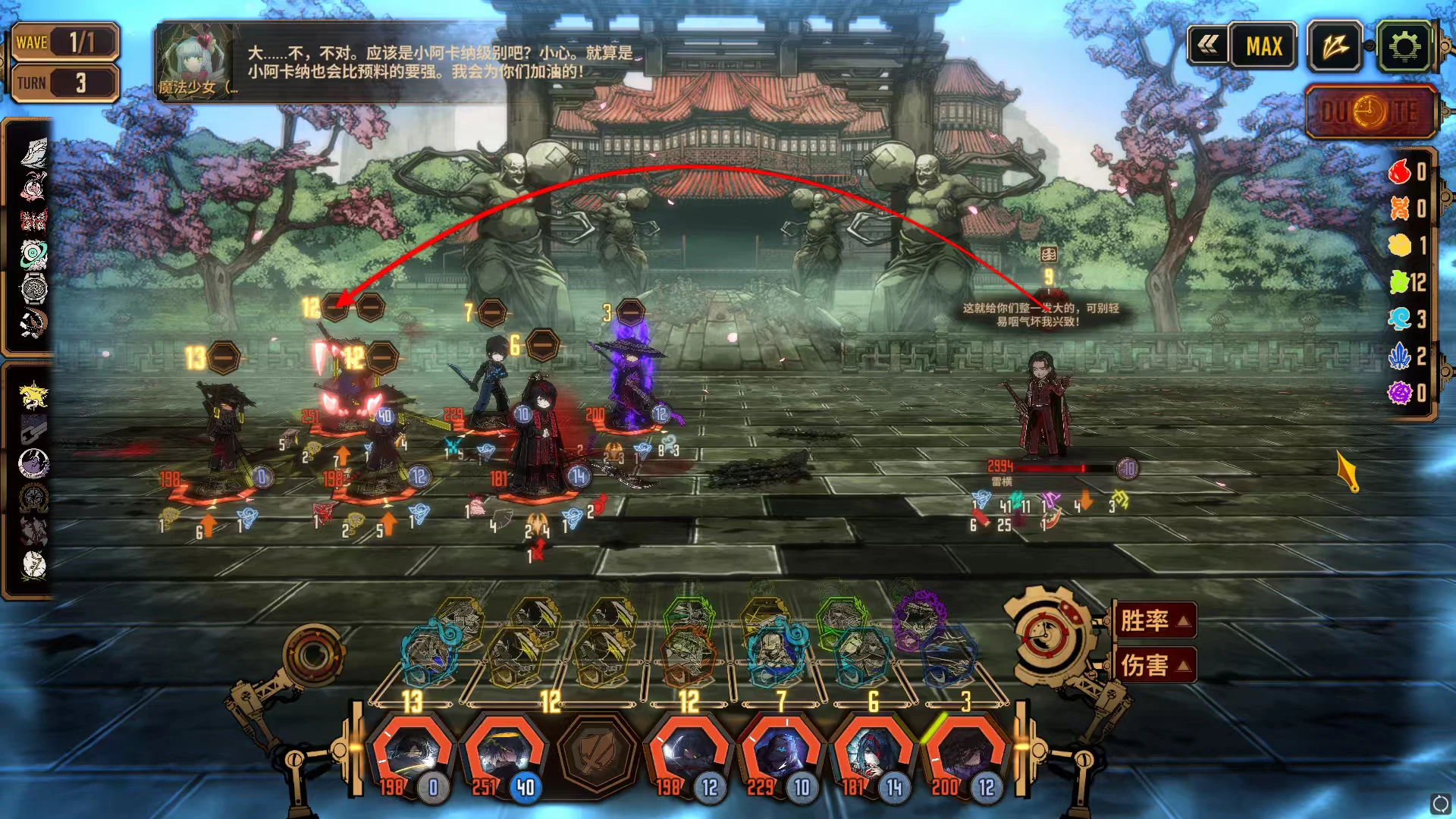 轨道线外(目前君主轨道线有bug)不需要纠结带满5黑兽7人队或者惜春玛反击下场黑兽的问题。 现在最舒服的黑兽队永远是子路浮双槽,而不是满黑兽触发下场机制让动物朋友们使用没暖机的三技能来上窜下跳的耍猴(就算11黑兽出齐了本人认为也很难超越双槽子路)因为双槽子路君主宝的队伍整体强度比带满黑兽强了一个档次,君主3技能触发一次子路大招,真正做到了让子路常规一回合最多放一个大 两个强化大(极限4大)。真正做到有强度和层数(见图)