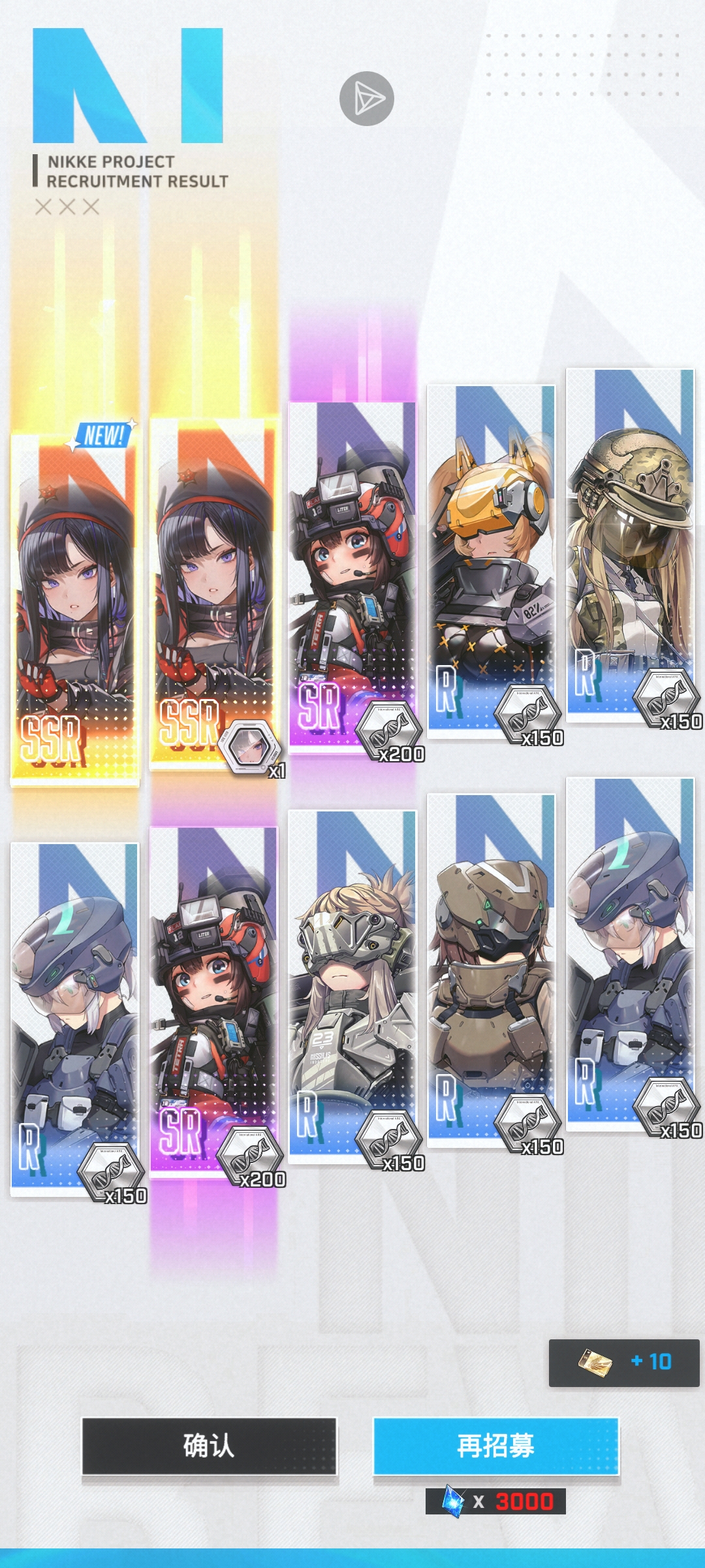 刚攒到一个十连准备抽一下新池子,就抽了一个十连,没想到一次就出了两个
