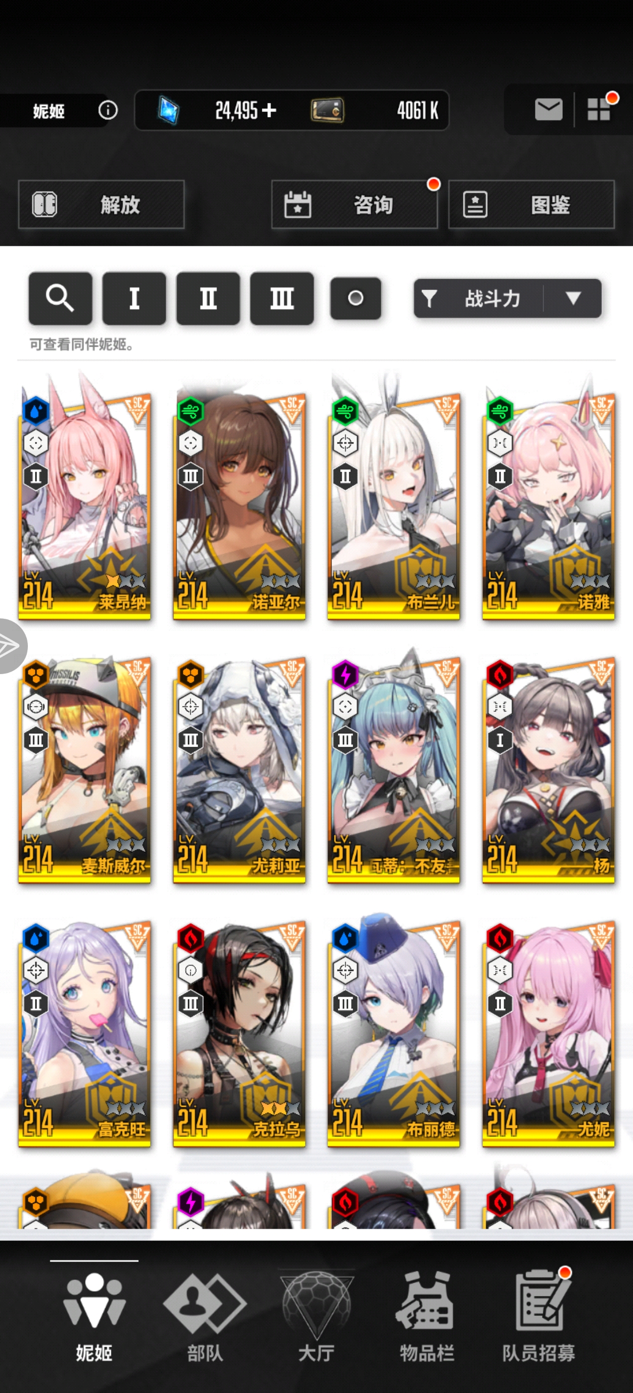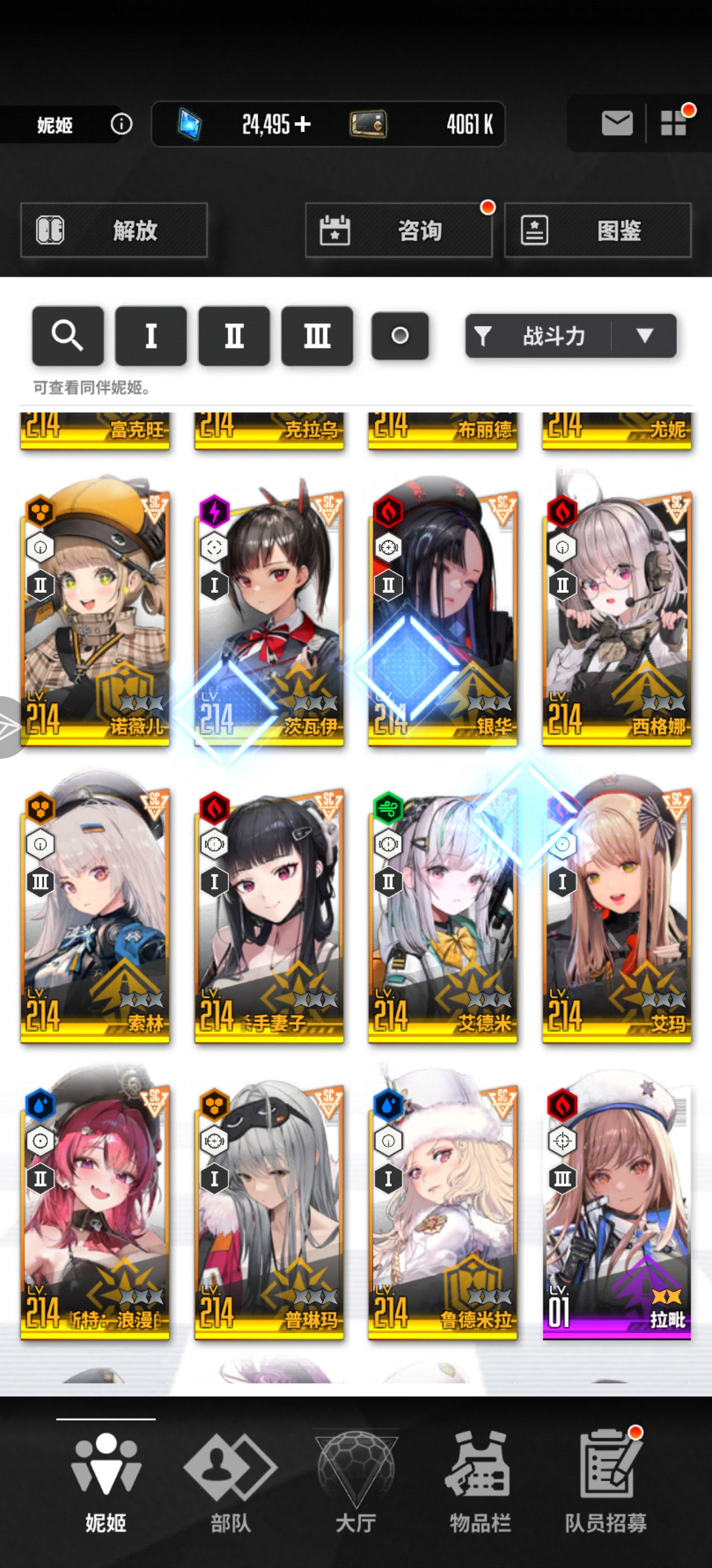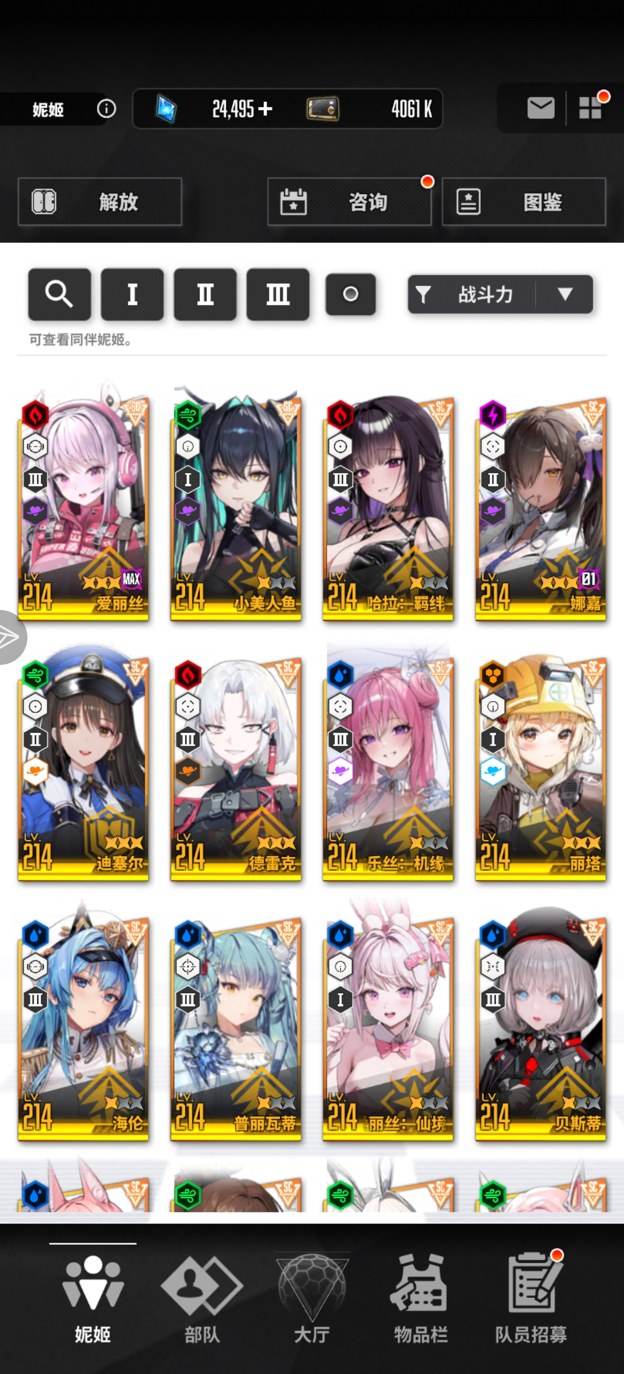 你这个都组不上满配的队伍,你可以暂时用美人鱼,女仆马斯特,迪塞尔,超米哈拉,珍藏品海伦组一个机枪队伍。后续用皇冠代替迪塞尔,超拉毗代替超米哈拉,就是满编队伍