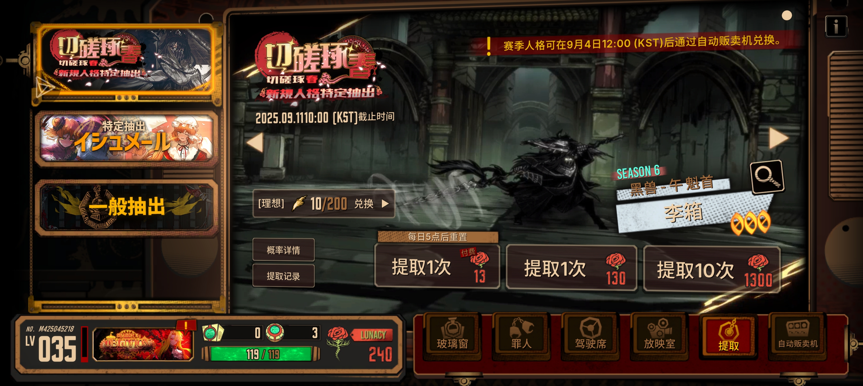 一发10连人格和EGO全出了。