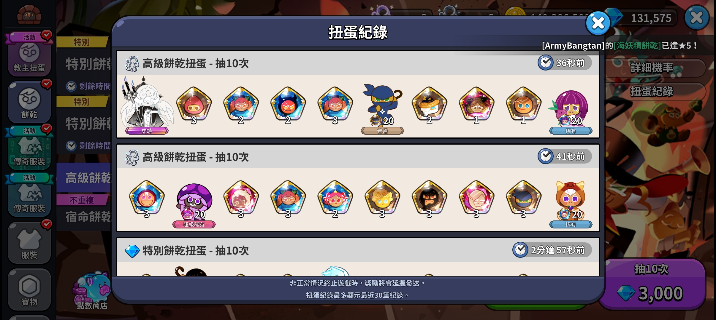 你是超三了,但我也变得超穷了,不过谢谢你送的普通扭蛋,让我抽到了面团尔
