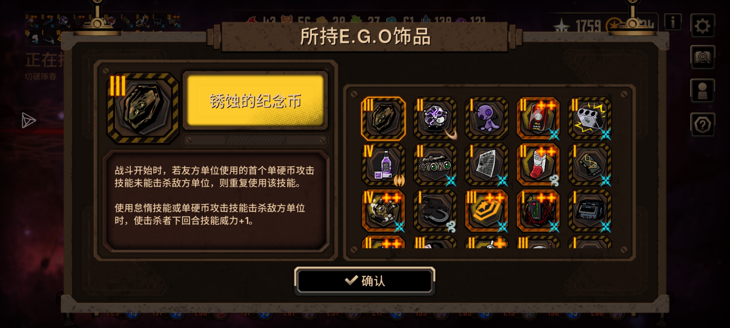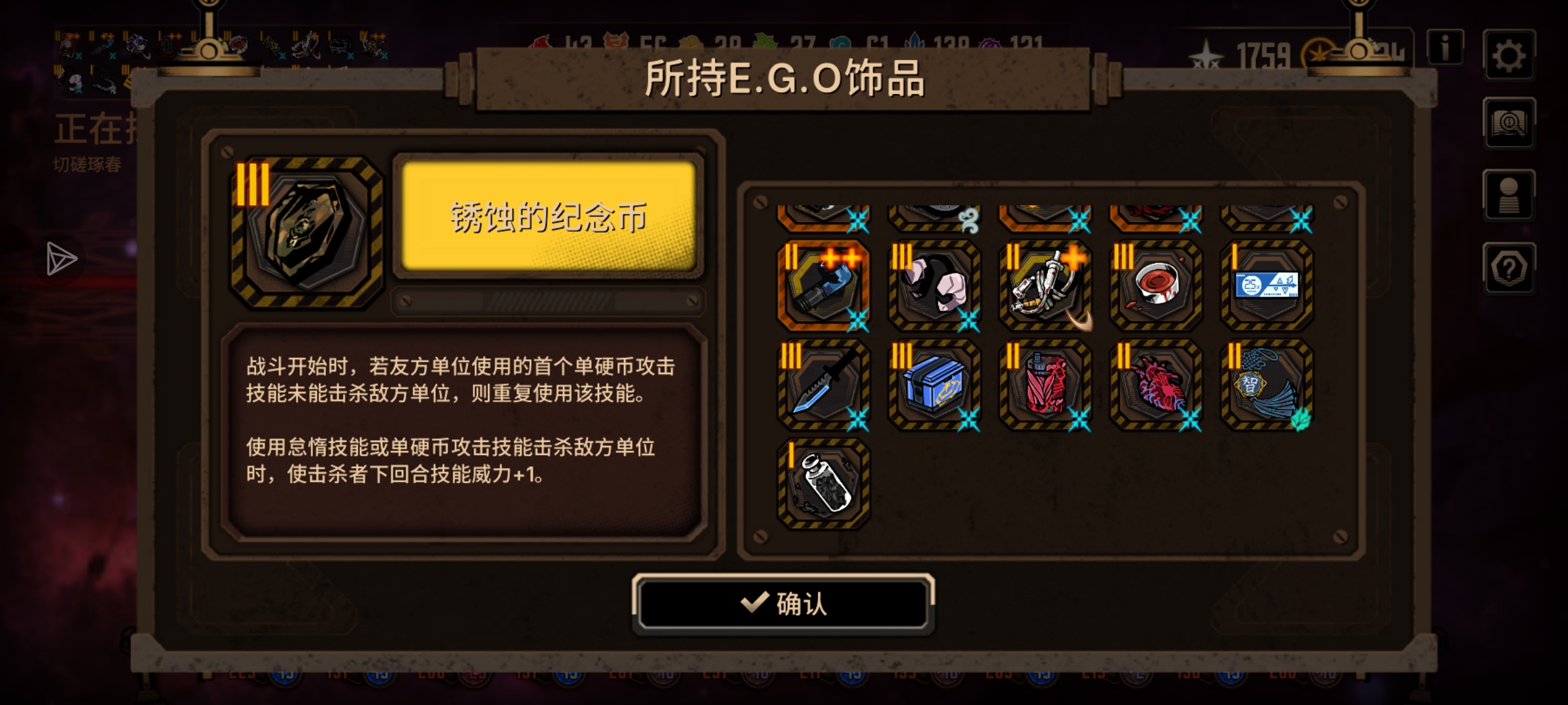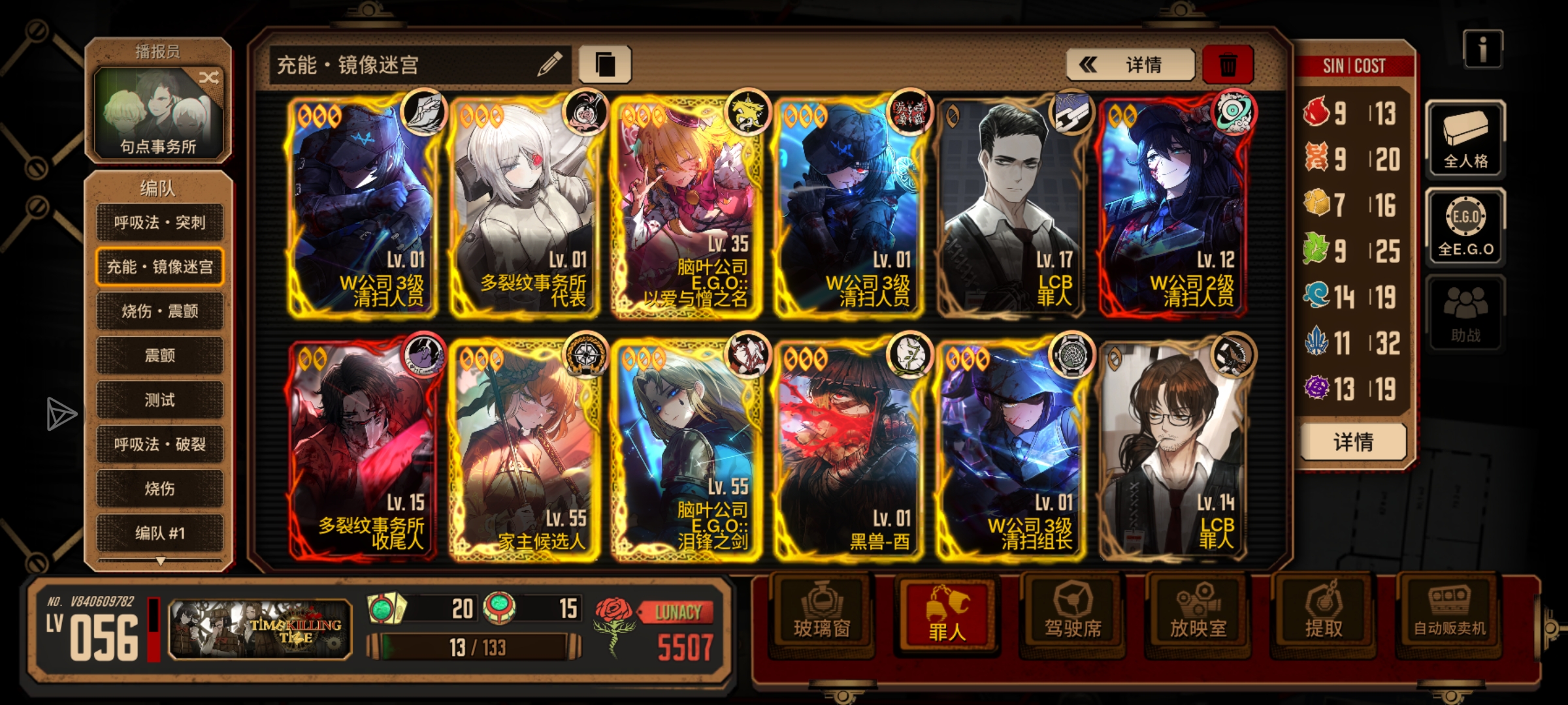 自己有几个充能人格,再加上充能补强,就组了个玩,但是普牢出伤怎么这么慢,伤害还低,玩呼每关不超过2回合,充能最起码4个回合,我看看我在饰品也没问题啊,人格也是充能人格,怎么就是没有别人的高伤,快破防了