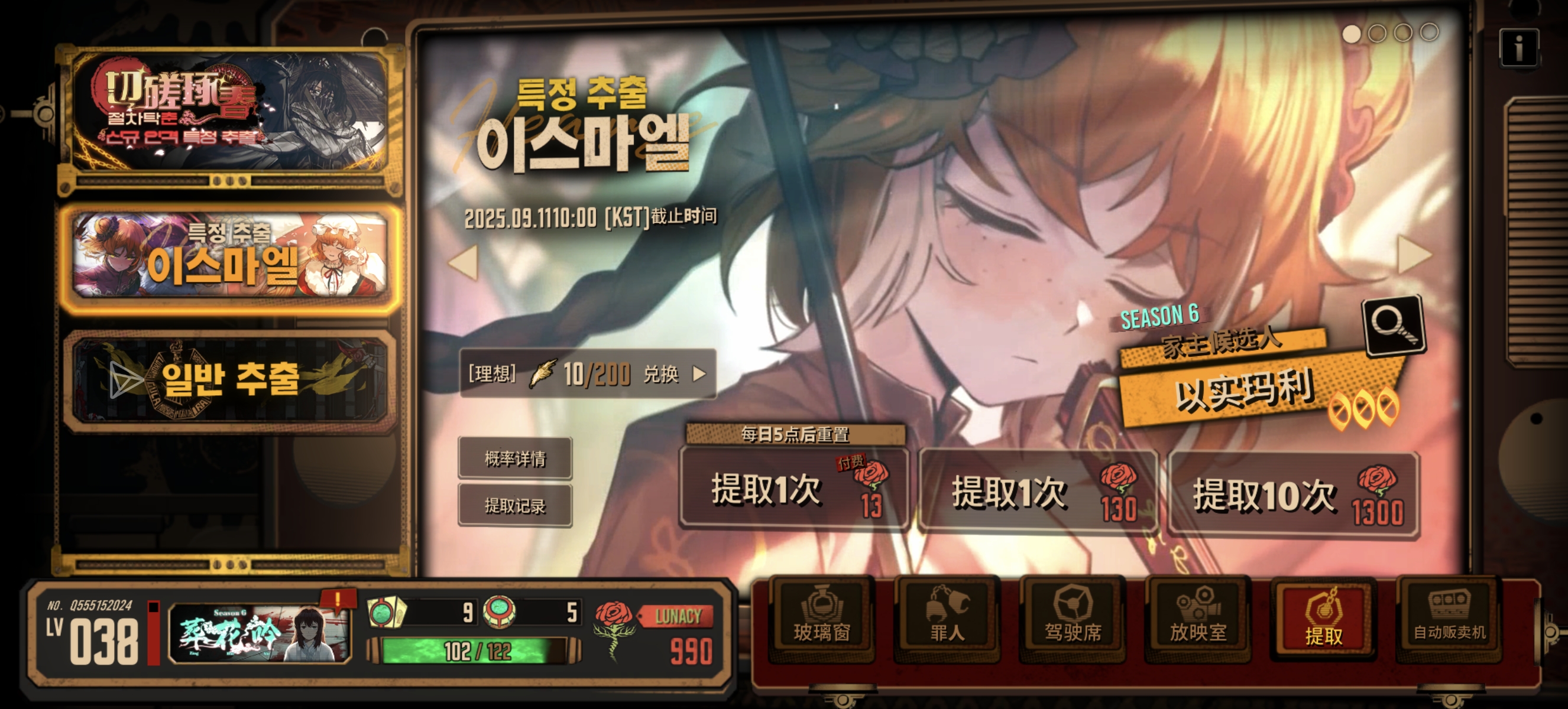 这弄得我感觉我好像没有寿命一样之前那个号第一抽就出了狂猎但之后就没有出过什么货然后因为空间不足了就删掉了没有账号只能重新玩了