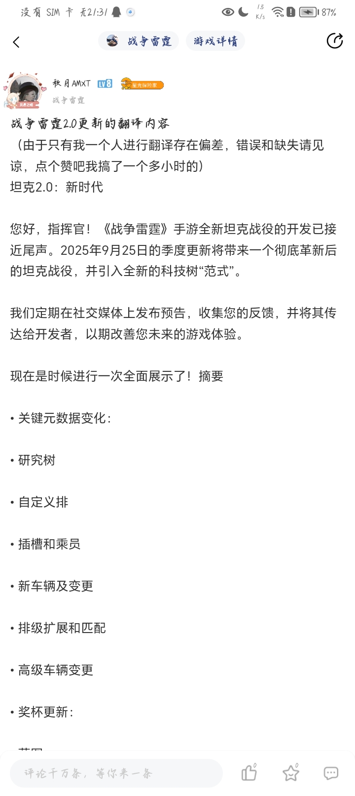 战雷2.0更新内容翻译(重发版)