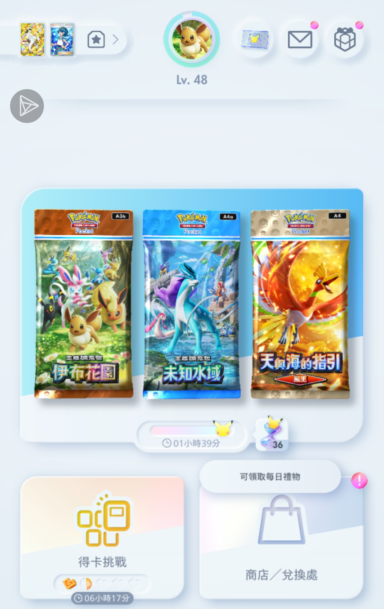 🎯 定向换卡:想要特定宝可梦?稀有卡牌抽不到?别担心,每开一包都能得到换卡点数,当我们开的数量增多,我们就可以用这些点数去换我们想要的固定卡牌!