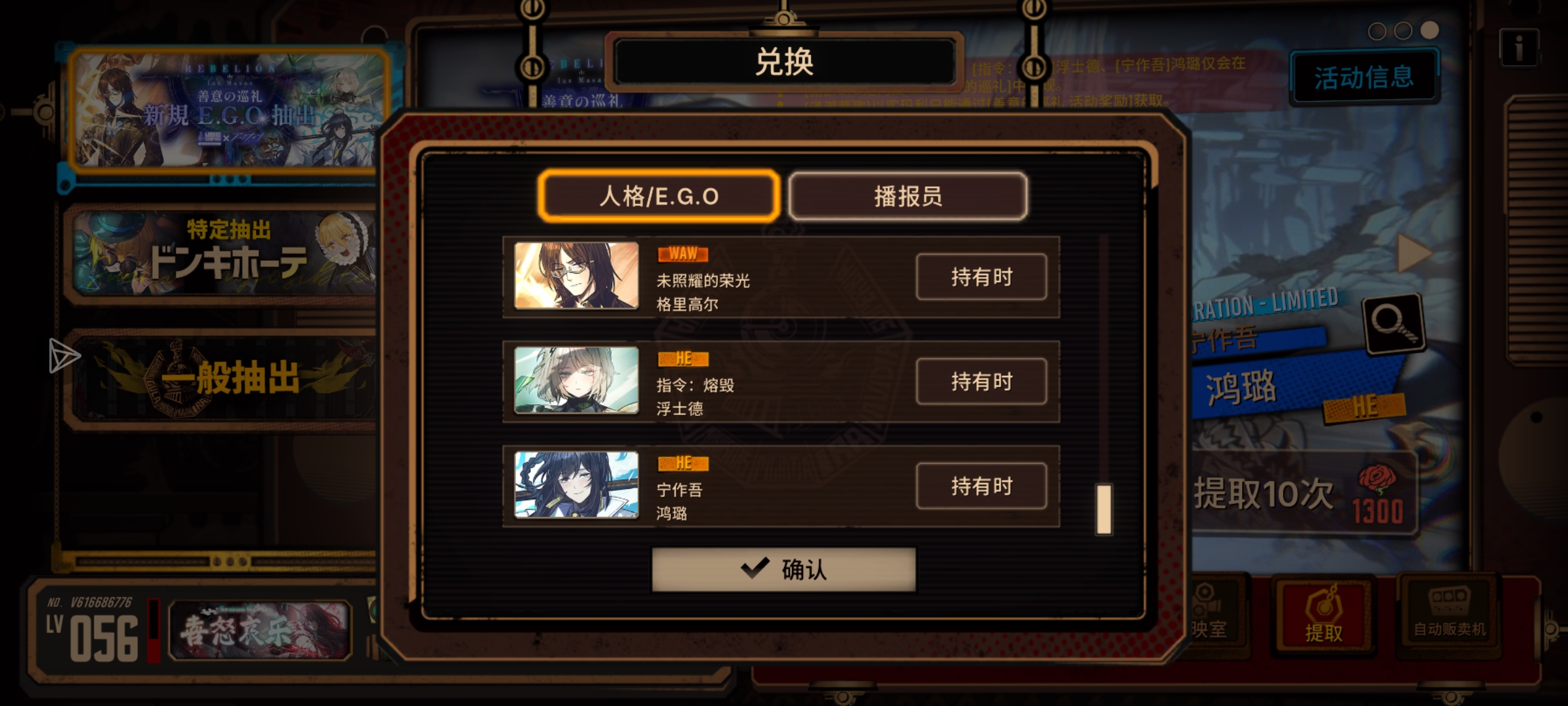 相比较于上次瓦夜,虽然十抽出了小唐EGO但后面直到180抽才有一个三灯,还是绝望罗