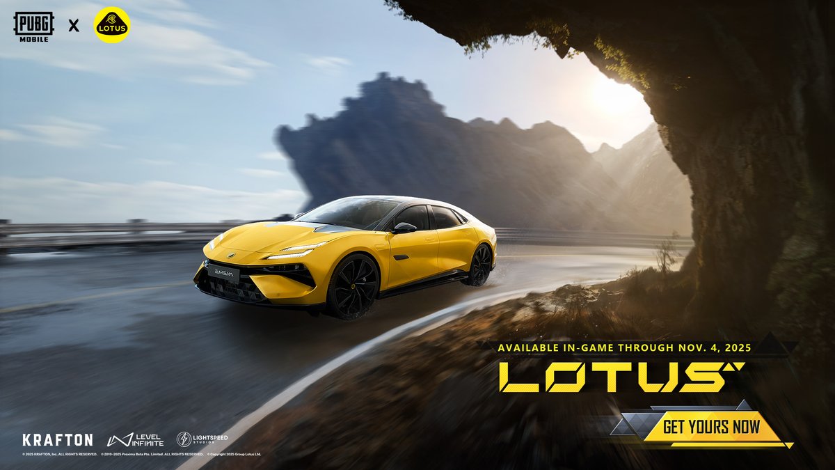 优雅传奇,战场重生。在《绝地求生手游》中体验@路特斯汽车 #Emira与#Emeya,限时开放至11月4日。