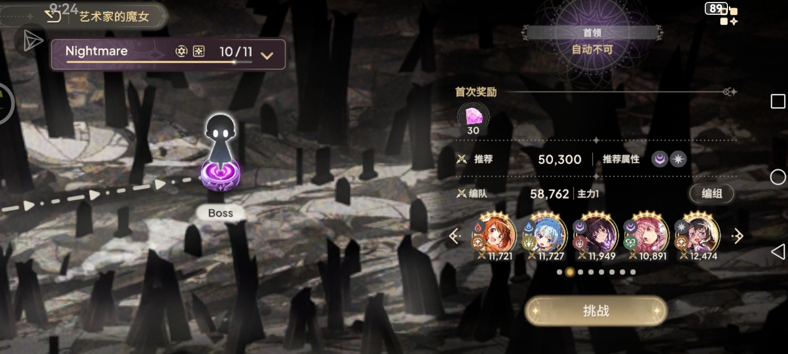 阿丽娜,麻花焰,铃(或者鹤乃),黑长直焰(或者圣麻美),枫(或者dp环),注:有小怪一定要先清小怪,不然BOSS使用那个敌方在场角色越多伤害越高的技能就完了,一般只有BOSS一个时,那个技能的伤害是不高的,一个枫的大招就回满了[WINK]