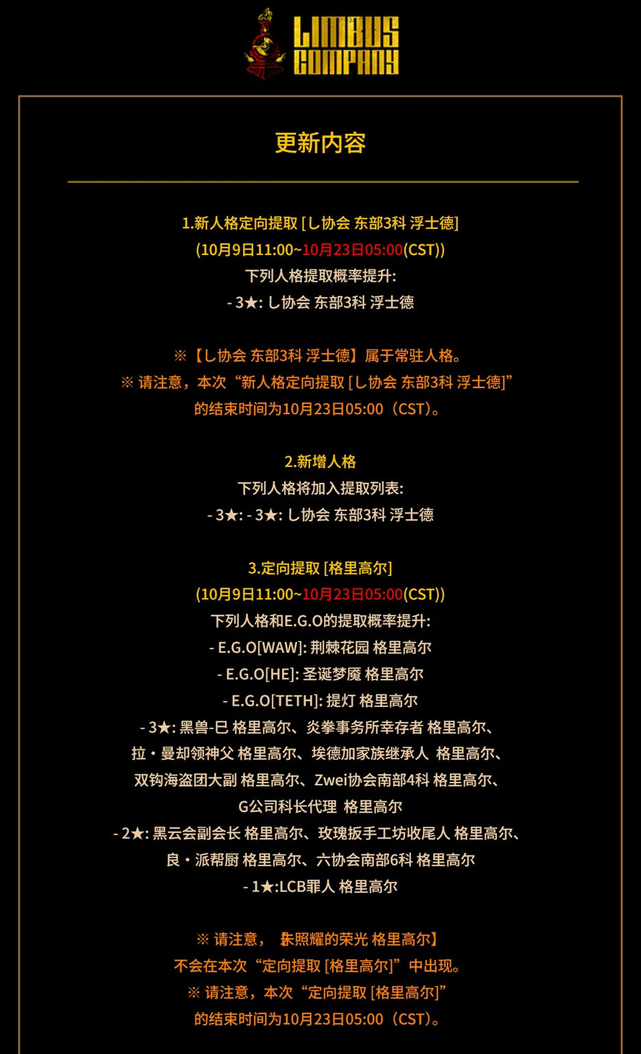 10.9 定期维护公告&新人格预告