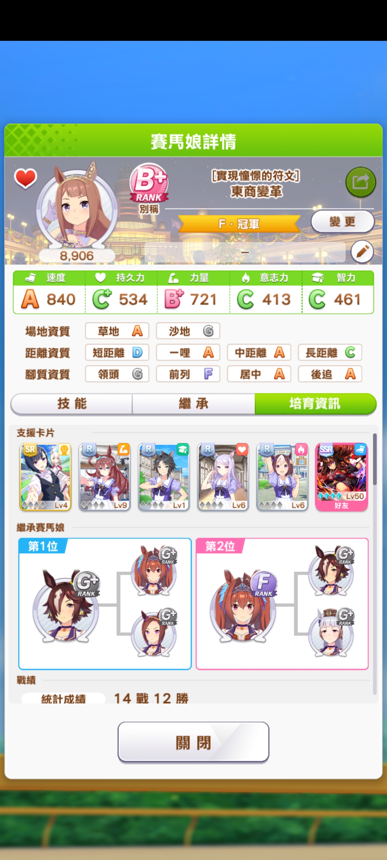 因为日服系统维护,去繁中服里玩了玩,依靠在日服的100小时游戏时长培养的第一只马(贴主是XP党,只抽马不抽卡的,纯坐牢)