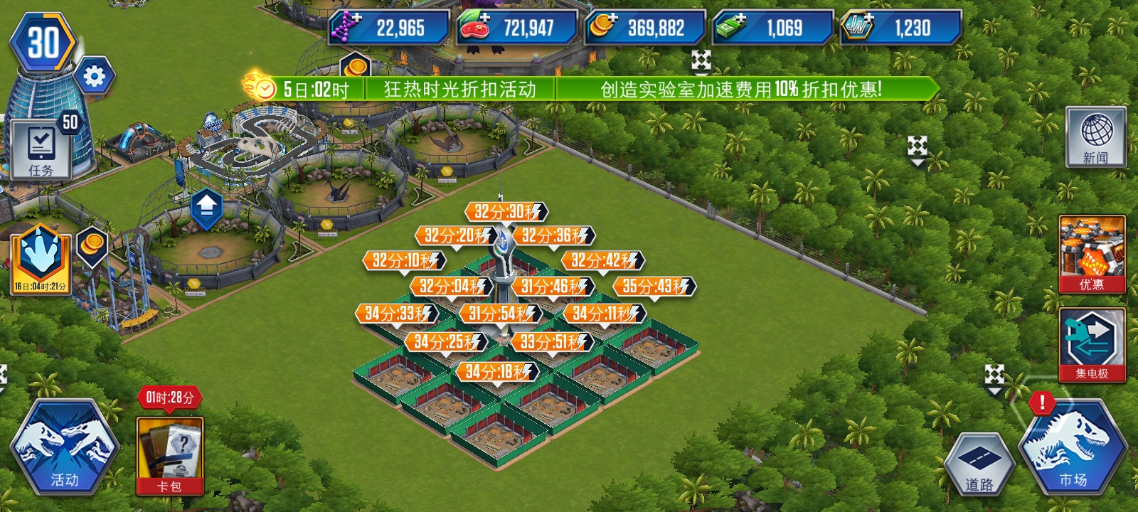 四十级以后的侏罗纪解锁战一场1000000,新生代和水生解锁战一场200000~300000,每日活动一场至少200000~500000多攒点金币做金币塔吧
