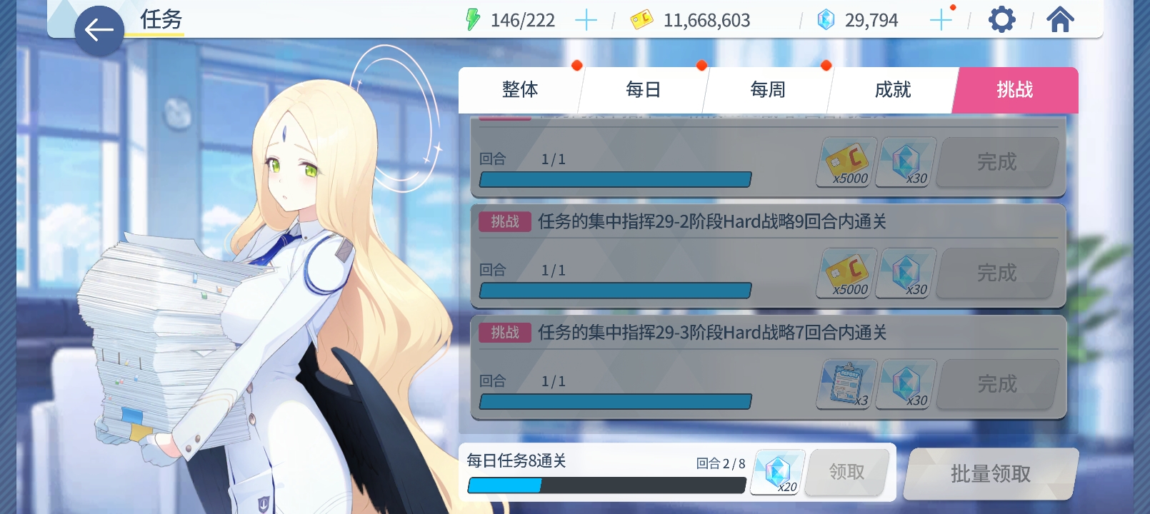 因为我入坑日服到现在也有2个月的时间了,一直以来1-1到29-5都是用简单关卡过的mona关卡,现在想攒石头用了5天时间凸从1-1凸到29-5的普通关卡,累是真的累,走格子走麻了,但努力还是值得的,打着很费脑。