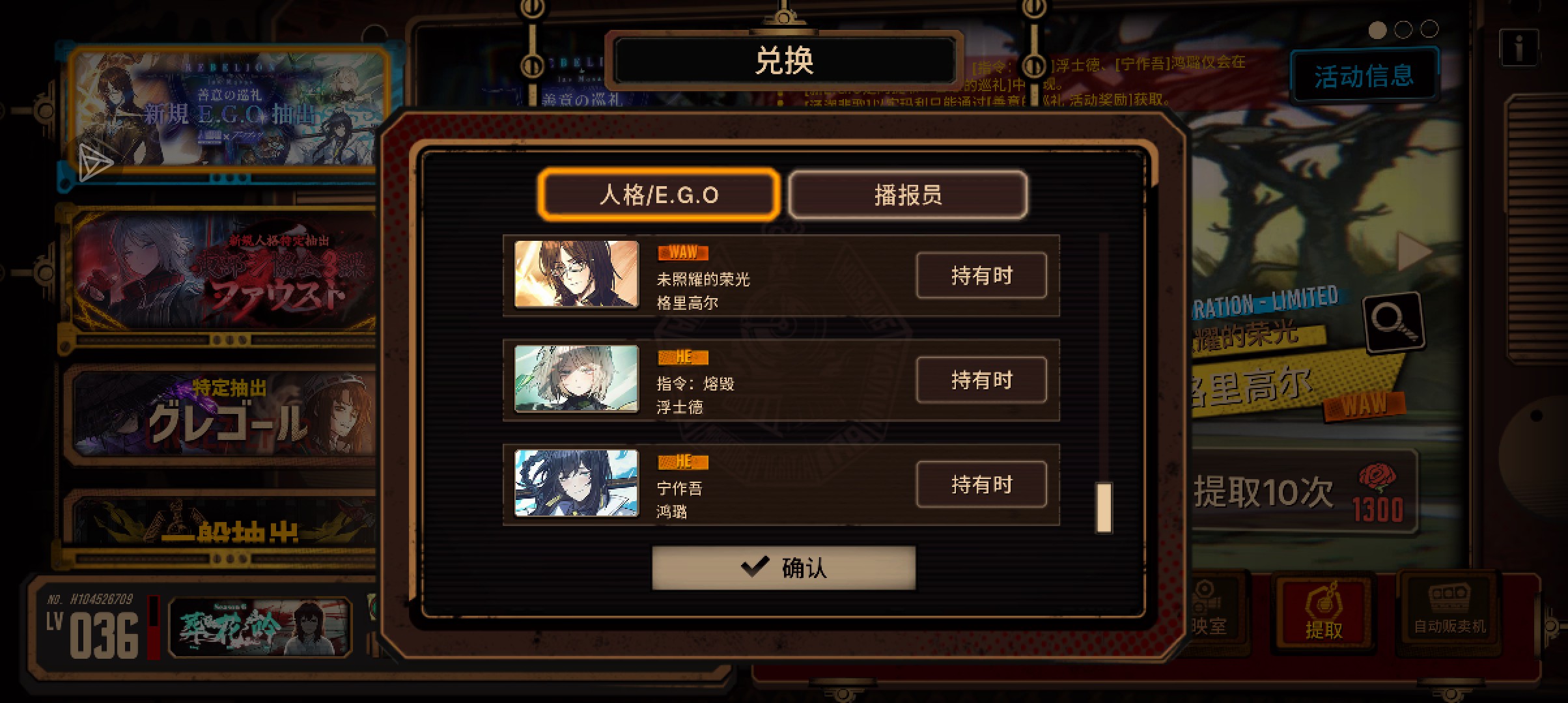 终于出完了,第一个在二十多抽就出了,结果后两个到一百多抽才出