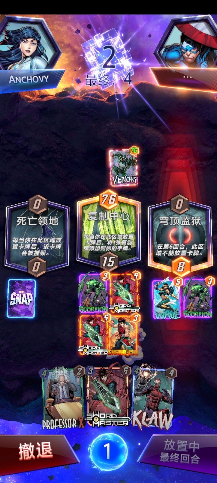 对面玩毒液套娃,我最后一个尚气扭转战局。不得不说,尚气很多情况下确实好用。另外,我发现一个打法:盾➕海煞,能做到六点能量13点伤害的同时,防止对面玩摧毁流,没有交叉骨的人可以这么玩海煞,但如果用他玩摧毁流不太好控制。