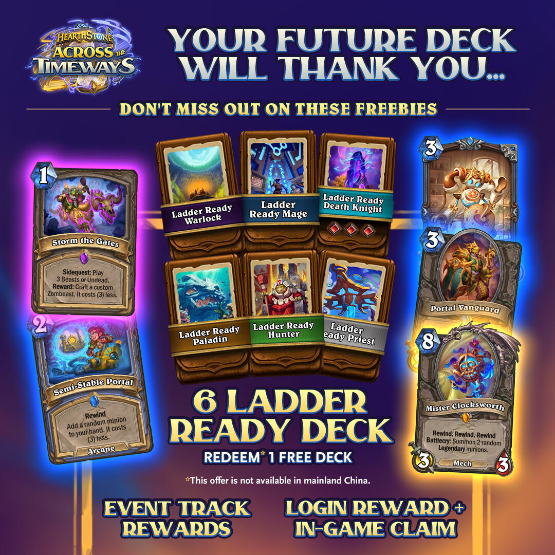 明天北京时间凌晨0点锁定我们的Twitch频道领取掉落奖励,别忘了领取当前版本的游戏内免费福利——包括传说卡牌、天梯预组套牌等超值内容!