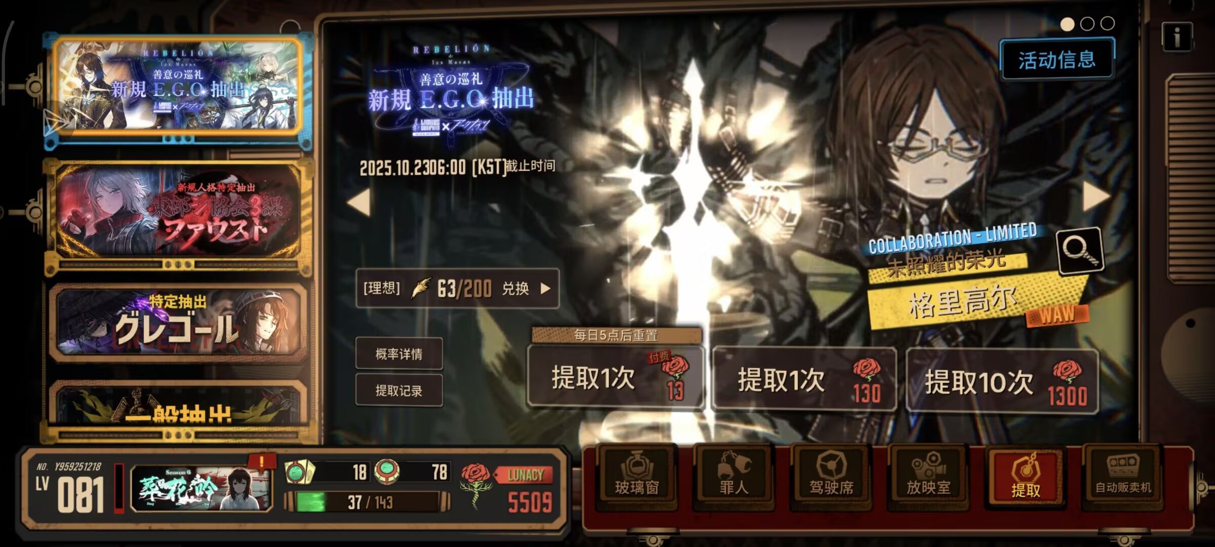 263抽结束巴士联动(宁作吾跟熔毁是抽出来的,200抽大保底换了荣光)这个池子真毒啊