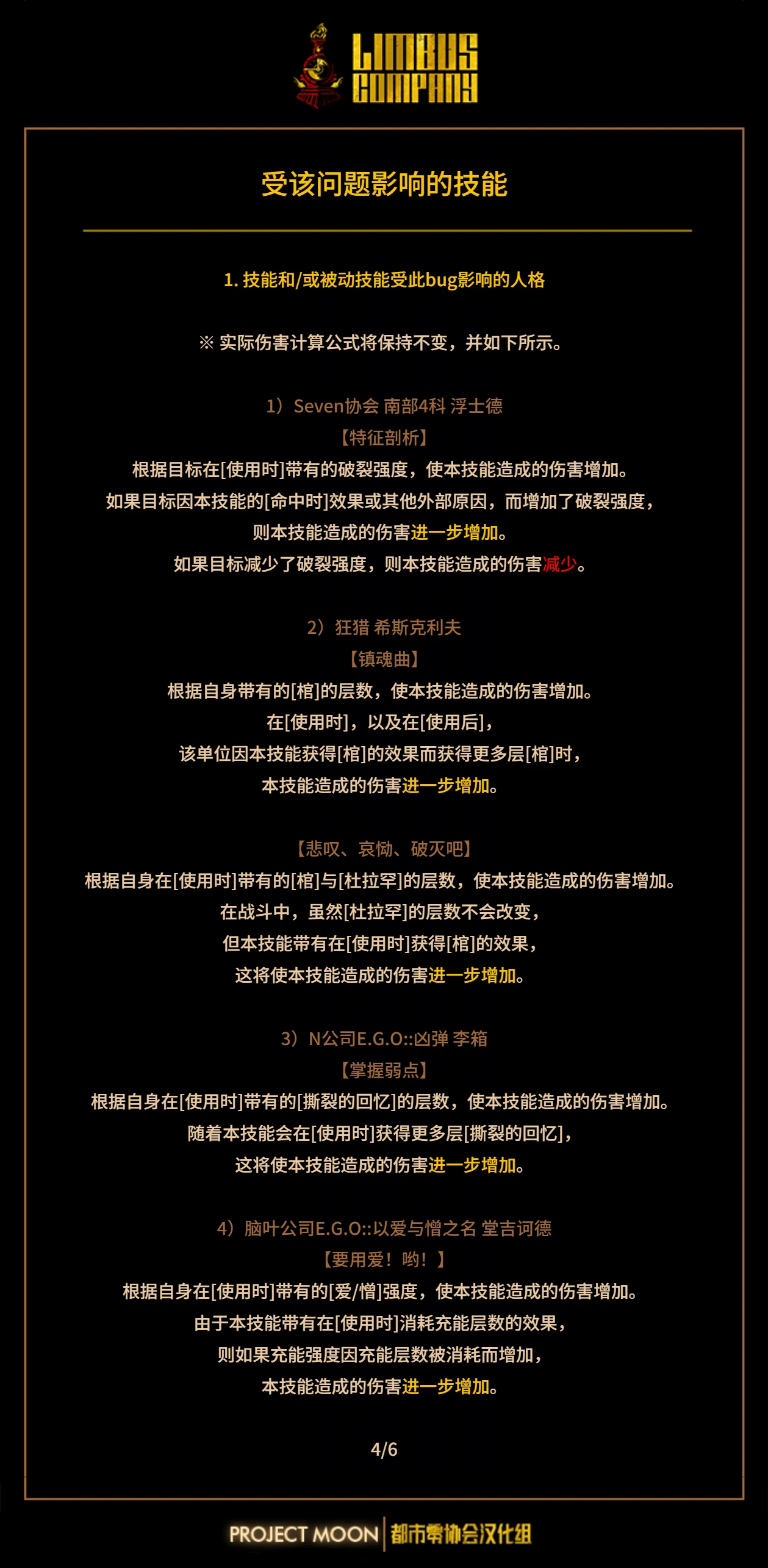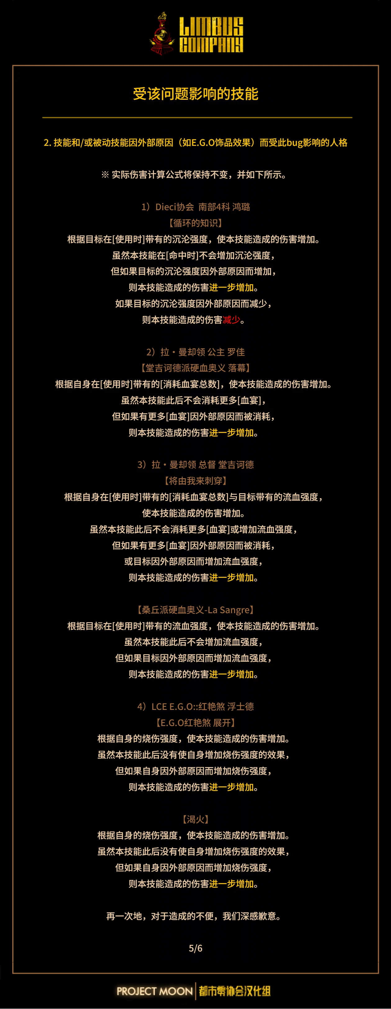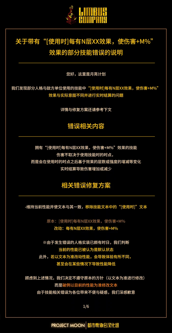 公告:关于带有“[使用时]每有N层X效果,使伤害+M%”效果的部分技能错误说明