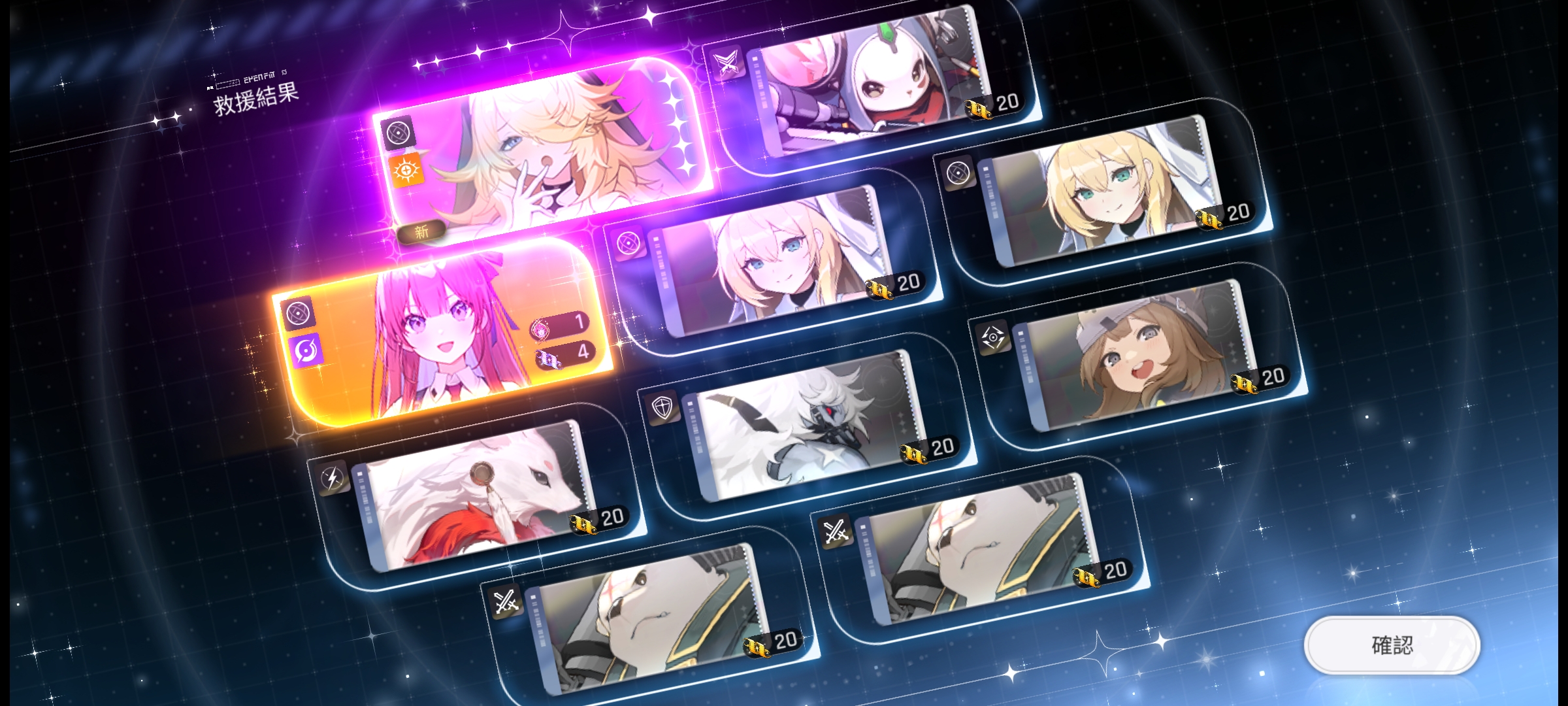 新手五十抽出了四个五星,其他几个太意外了没截图,吓死我了,然后常驻池又抽一个五星。