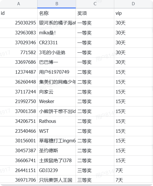 获奖名单新鲜出炉~快来看看有没有你吧~头像框已发放VIP奖励将在14个工作日内发放给各位大人们~