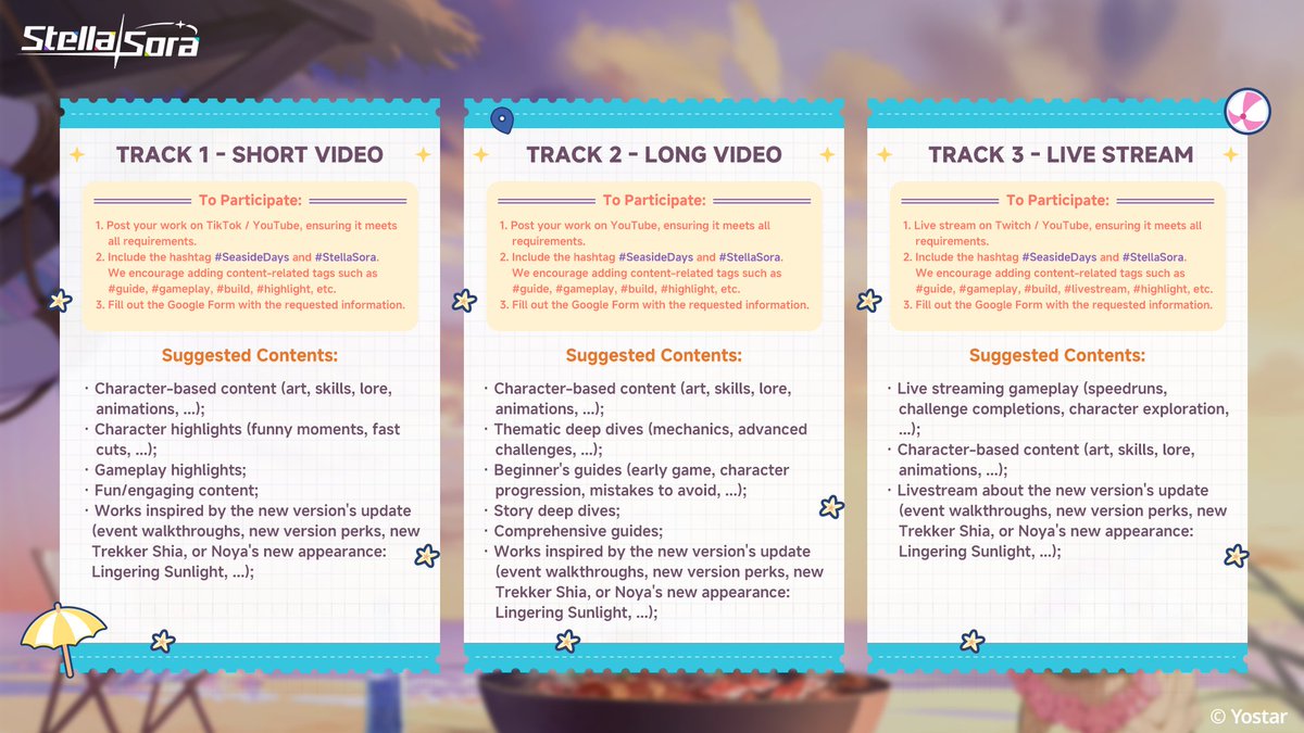 亲爱的暴君大人,很高兴与你相遇于此!让海风将你的灵感吹拂至屏幕,分享你的原创视频/直播作品,即有机会赢取现金奖励、星尘×3000及专属周边。每位至少提交一份合规作品的参与者均可获得参与奖,我们还将从所有投稿中额外抽取幸运奖(其他奖项获得者除外)!详情请查看图片或访问官网。