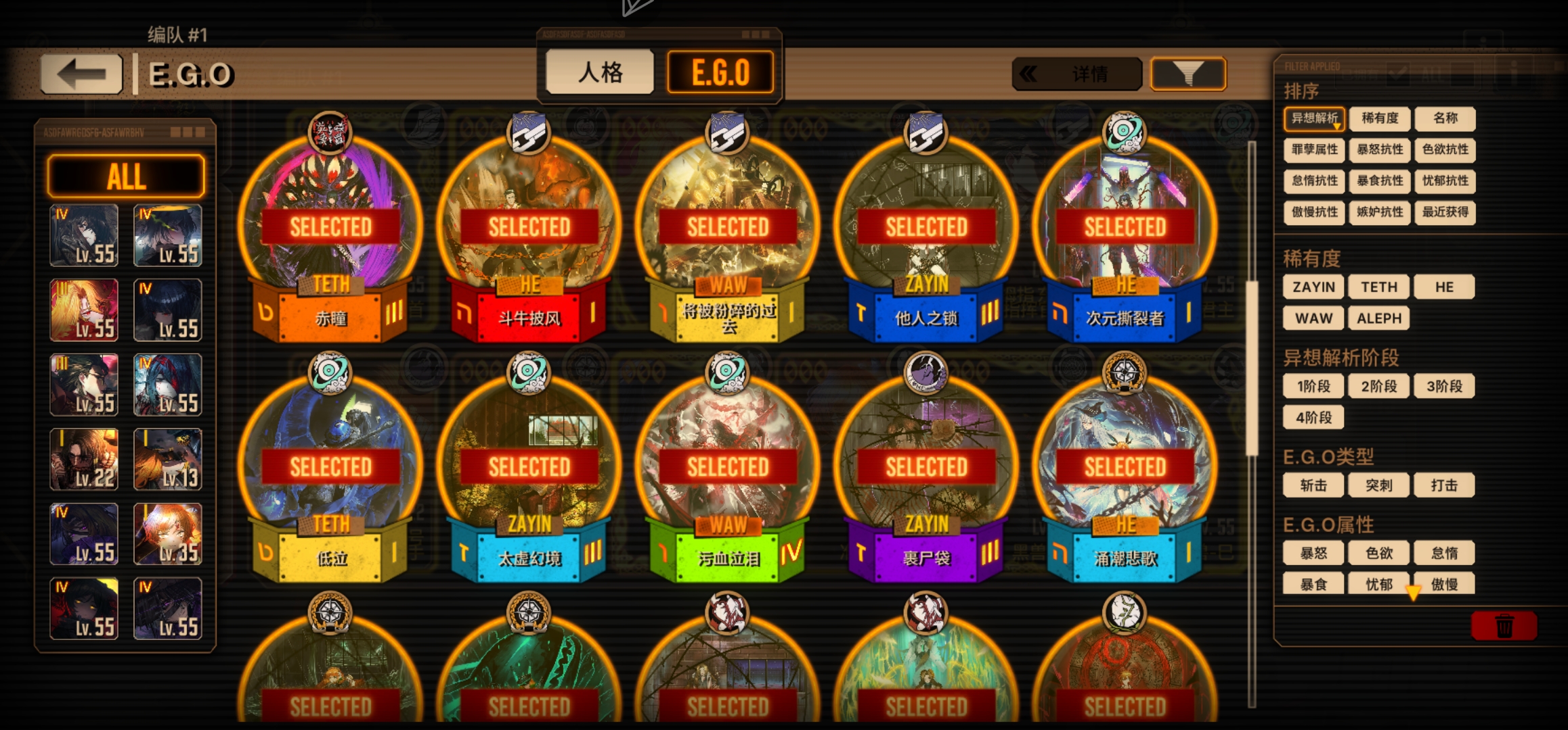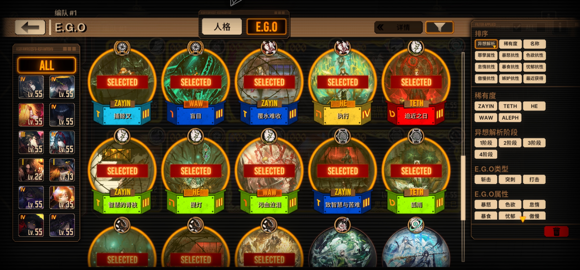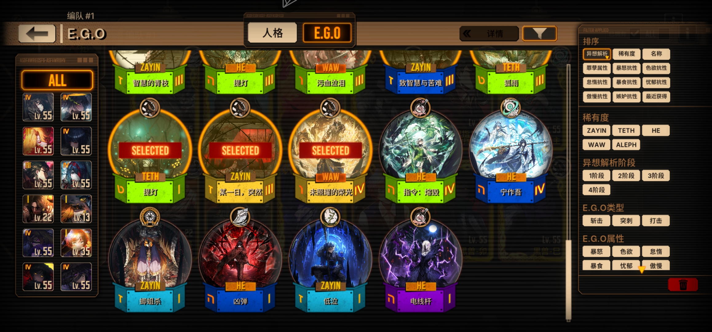 优先绝望罗(数值怪),句点双人(1+1>2)和憎恶堂+专武(ego占模)最好一起拿下,其次赤瞳良(不要脑子单走也强),蝶箱(数值不错)最后魔弹(逃课用)悔恨(老人格数值一般)黎明辛(用着难受上限能看)
