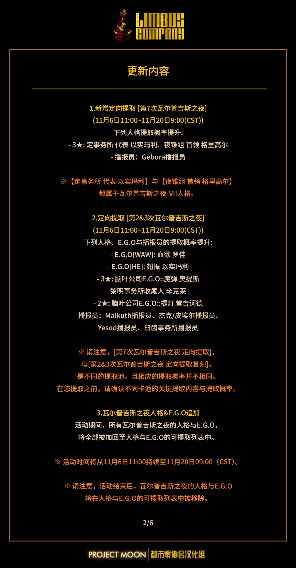 11月6日定期维护公告