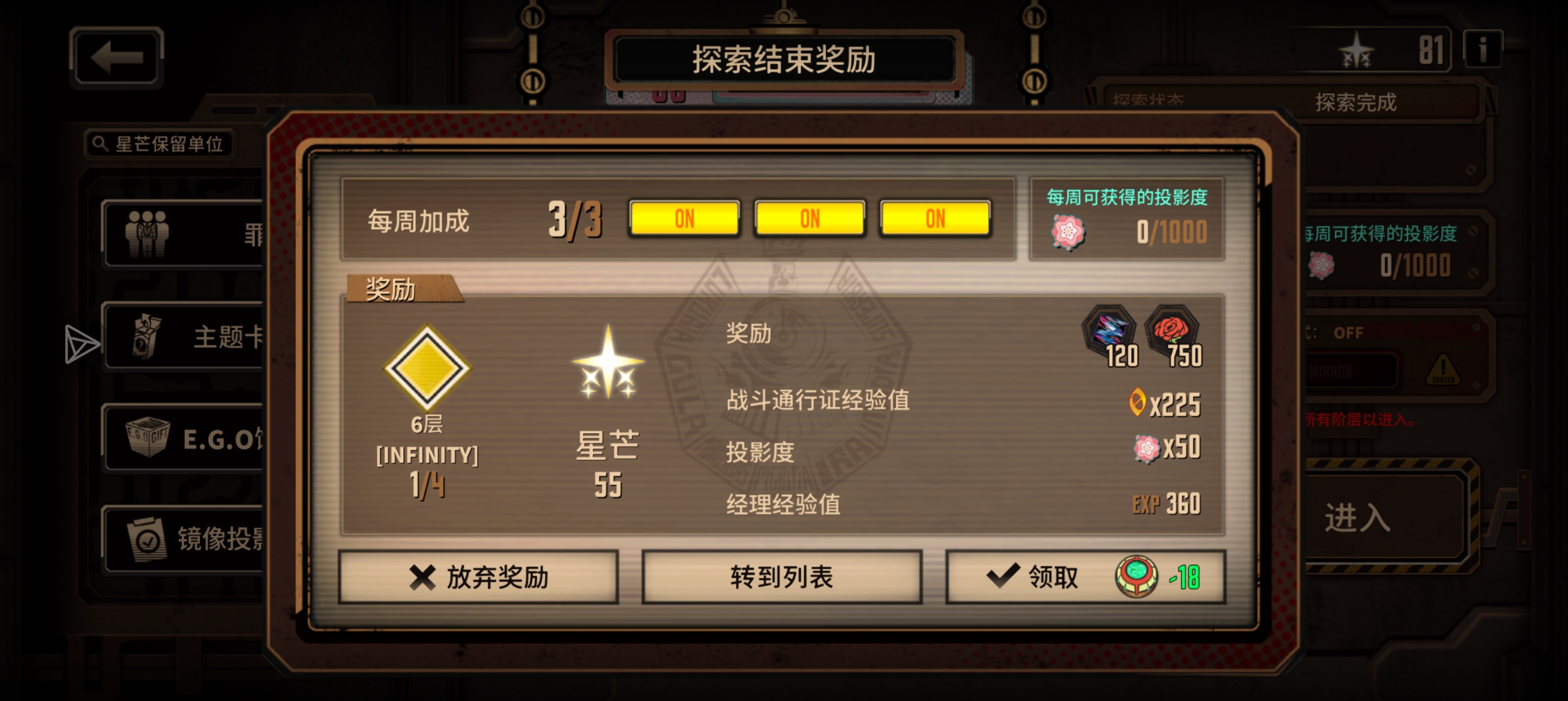第六层1号线,没打完,结算了