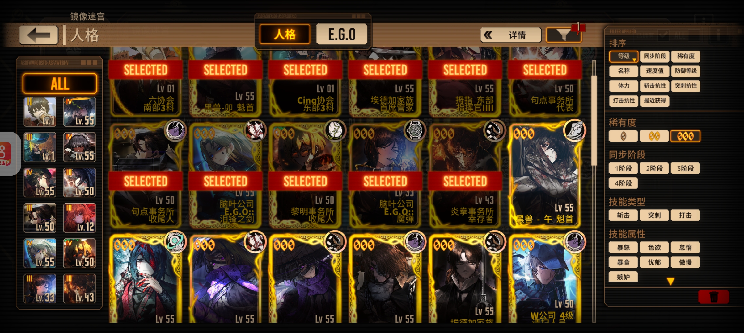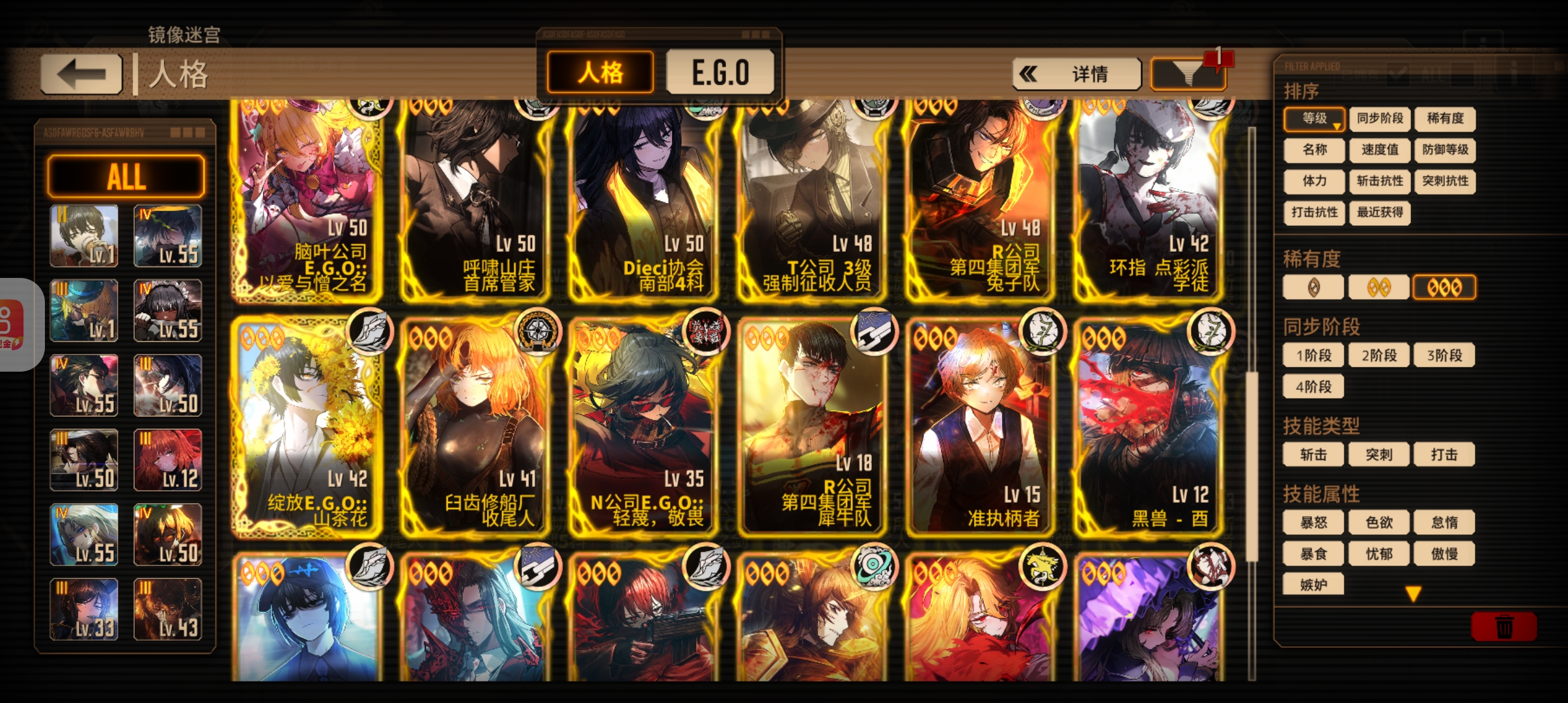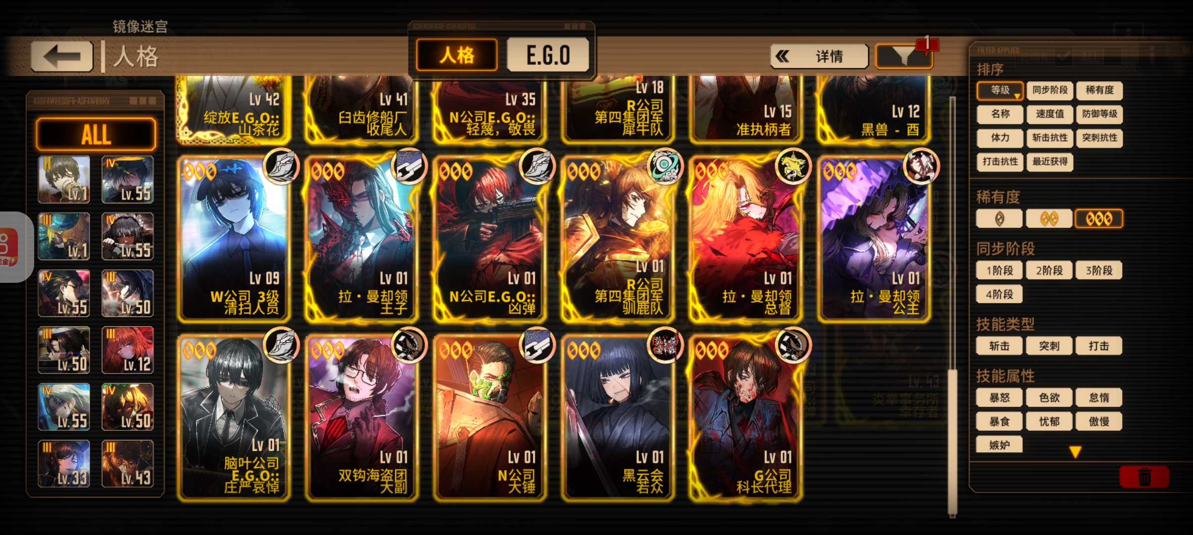 人格换差不多了,魔弹、悔恨、以爱与憎之名、血欲这些ego换了吗,没换可以换