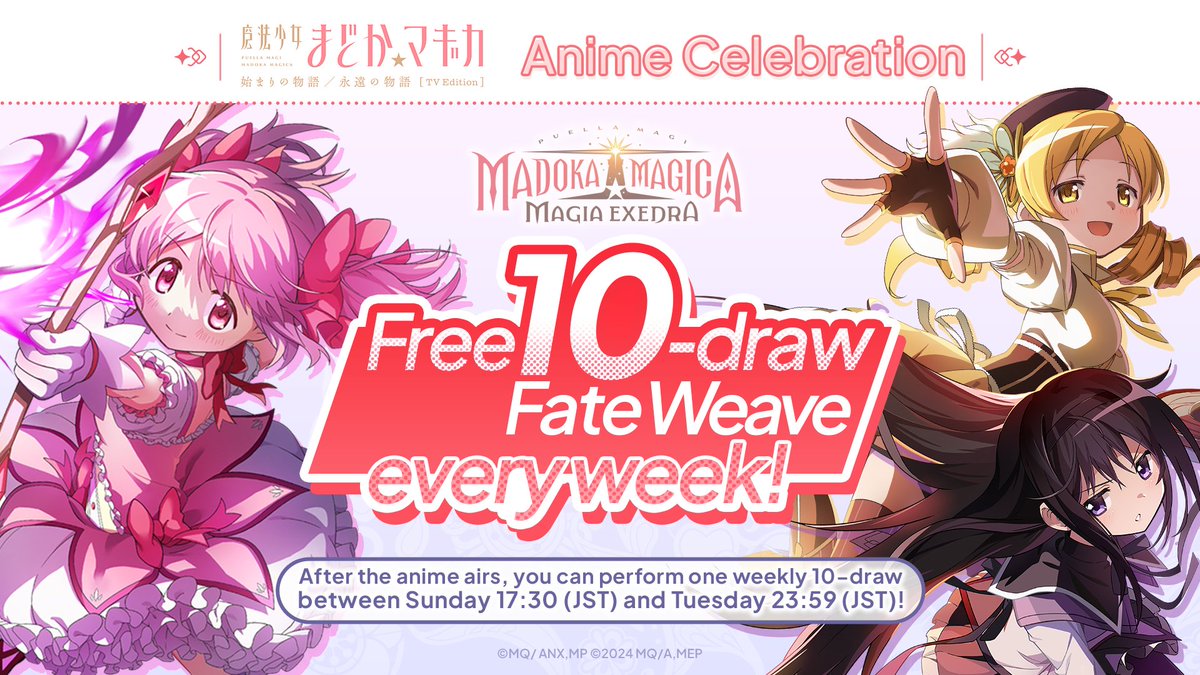 动画播出期间,每周日16:30至周二22:59(北京时间)可进行一次十连抽卡!