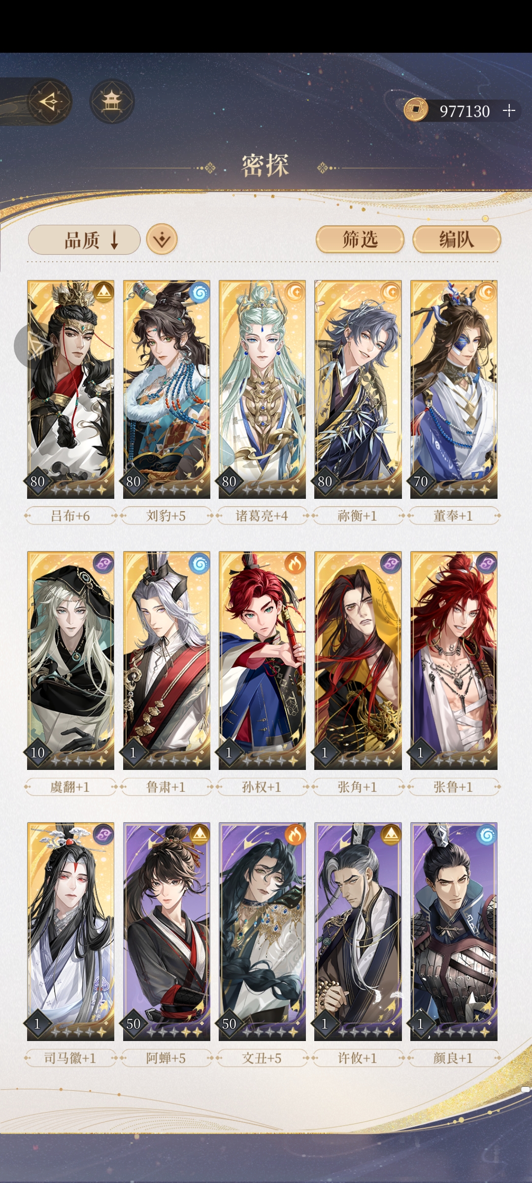 虽然配队我不太会,但只要有吕布,哪怕只是一星都蛮好用的,吕布超神的,我小号吕布80级不到才一星,随便配个队开大都能打将近一百万,过主线简直库库一顿干哎!何况你这个还有角叔跟杏林君喔!如果你不是那么注重配队的话只是想问问养哪个或者打活动用哪个这个号还可以啊,张角跟张鲁还有虞翻一个队,第一列就已经凑成一个队了哎!还有陈登就是百搭的啦,先着重养养吕布,董奉,张角这三个吧,我只是给个建议,不是很懂哈,我不是强度党,我都是慢慢养,搞不懂机制就去搜攻略。