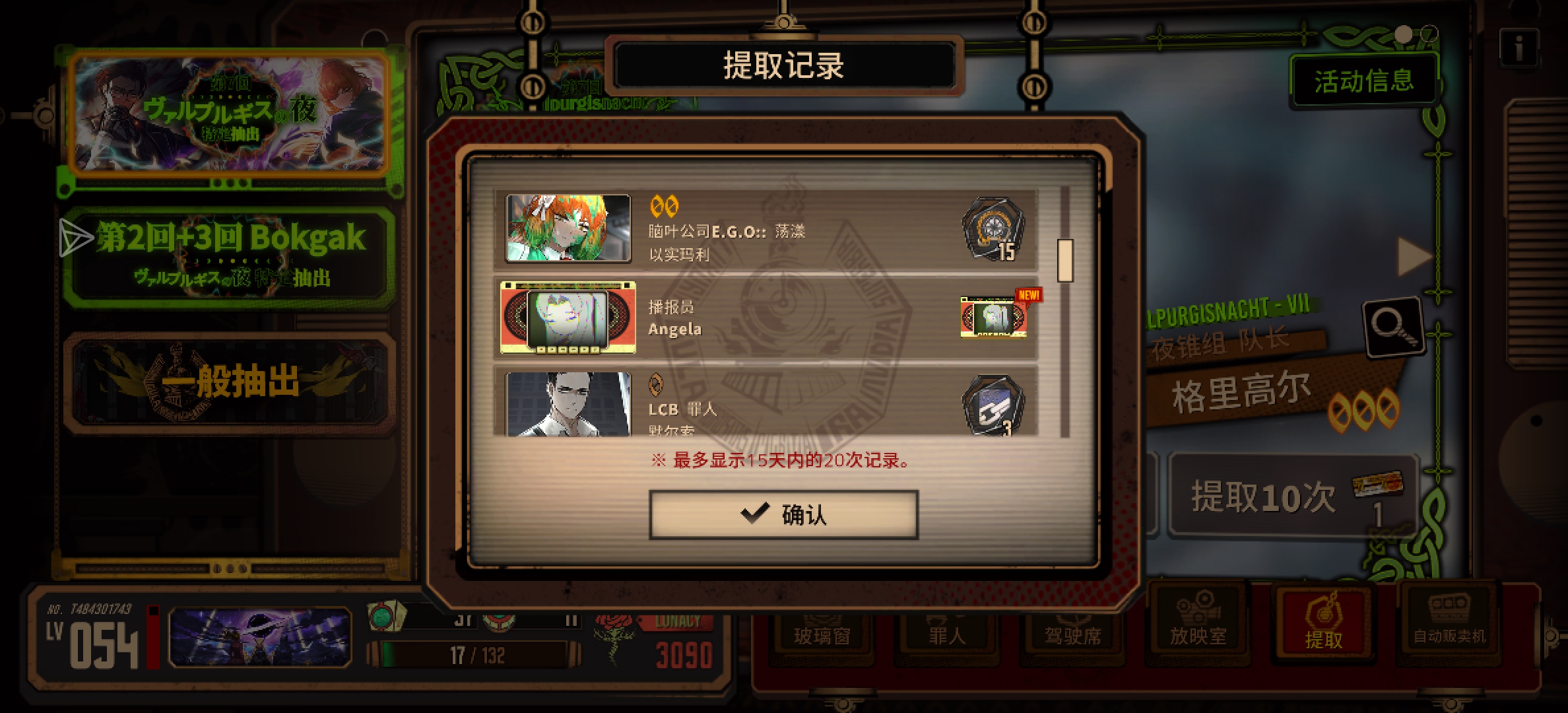 3:池子里真的有3灯人格和E.G.O.吗…60抽下去全是播报员。